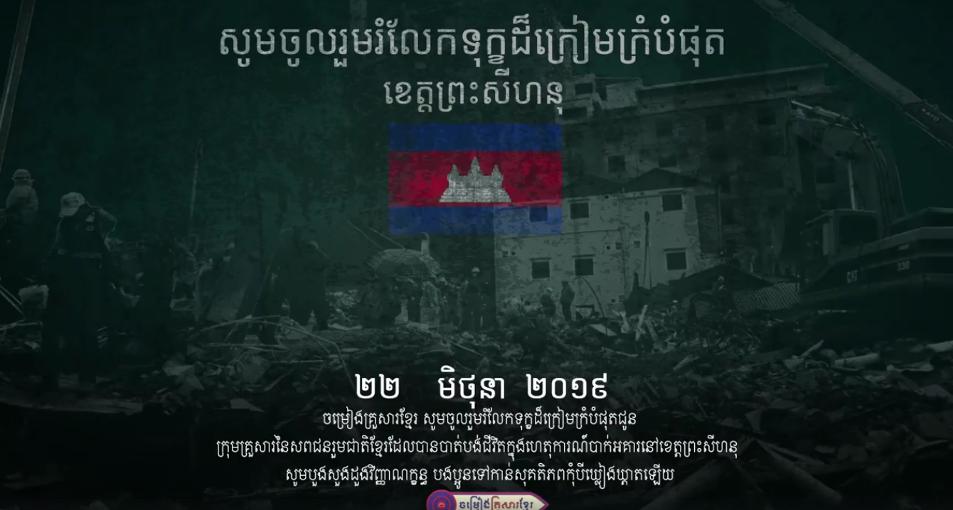 ដោយឡែកក្នុងសង្គមសិល្បៈតារាប្រុសស្រីជាច្រើននាក់ក៏បានបង្ហោះសារចូលរួមរំលែកទុក្ខដល់អ្នករងគ្រោះ និងក្រុមគ្រួសារពេញបណ្តាញសង្គម។ ក្នុងនោះតារាចម្រៀងស្រី សុវត្ថិឌី ធារីកា ដែលជាអតីតបេក្ខភាព Cambodian Idol ក៏បានចូលរួមរំលែកទុក្ខតាមរយៈការបកស្រាយចំរៀងចំណងជើងថា “ខ្ញុំចូលរួមរំលែកទុក្ខ” ដែលនិយាយរៀបរាប់ពីសោកនាដកម្មបាក់ស្រុតអគារឆក់យកជីវិតមនុស្សនៅឯខេត្តព្រះសីហនុនេះផងដែរ។ ចំរៀងមួយបទនេះពោរពេញទៅដោយអត្ថន័យ អមជាមួយសម្លេងដ៏ពីរោះធ្វើឲ្យអ្នកស្តាប់សឹងតែព្រឺសម្បុរ និងកើតក្តីអាណិតជាពន់ពេក ស្រក់ទឹកភ្នែកដោយពុំដឹងខ្លួន។ ចង់ដឹងច្បាស់សូមទស្សនា និងស្តាប់ជាមួយវីដេអូខាងក្រោមនេះ៖