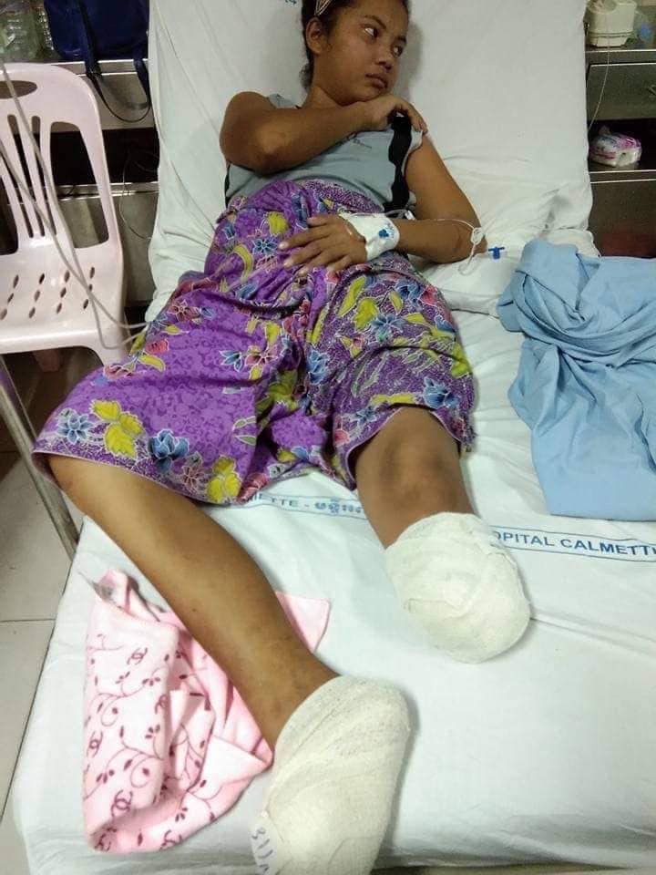 ឃើញហើយពិតជាវេទនាភ្នែកខ្លាំងណាស់សូមបងប្អូនជួយនាងដោយក្ដីមេត្តាផងចុះ ព្រោះរូបនាងត្រូវពិការជើងទាំងសងខាងហើយនៅដេកពេទ្យកាល់ម៉ែតនៅឡើយទេសូមមេត្ដាជួយដល់រូបនាងផងទៅបងប្អូនអើយ ពេលនេះនាងអស់លទ្ធភាពហើយបើសិនជាបងប្អូនមើលឃើញហើយសូមមេត្ដាជួយនាងផងទៅ។ នេះជាលេខទូរស័ទ្ធរបស់នាង 088 98 43 972! សូមអរគុណបងប្អូនទុកជាមុន សូមបងប្អូនជួយនាងយកតែបុណ្យផងទៅណាបងប្អូន នាងនៅភូមិបឹងឈូក ឃុំខ្នាទទឹង ស្រុកបាកាន ខេត្តពោធិ៍សាត់»៕