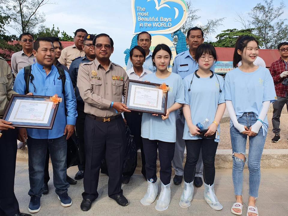 អភិបាលក្រុងព្រះសីហនុ ដឹកនាំការសម្អាតឆ្នេរអូរឈើទាល ព្រមទាំងប្រគល់លិខិតសរសើរដល់សិស្សសាលាមកពីទីក្រុងសៀងហៃ