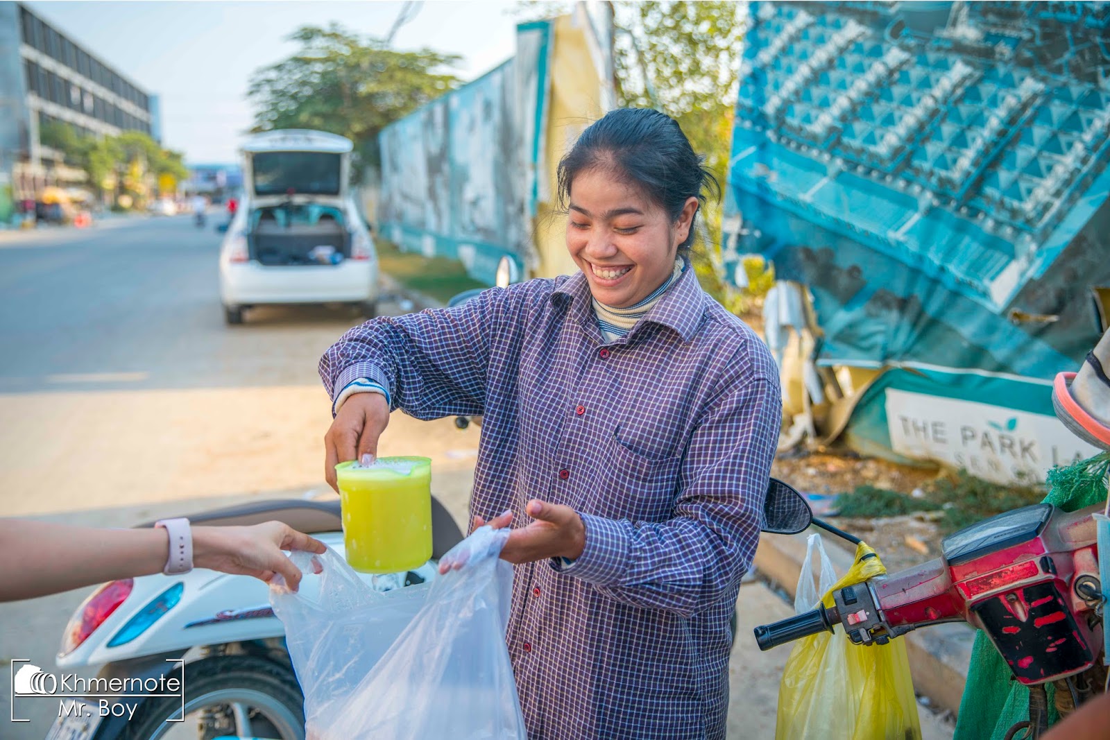 ស្ថិតក្នុងសំលៀកបំពាក់អាវឆ្នូតដៃវែង បងស្រី មុយ ស្រីស្រស់ ជាអ្នកលក់ទឹកត្នោតជូនៅចំហៀងបុរីជីបម៉ុង ខណ្ឌសែនសុខ បានប្រាប់ក្រុមការងារខ្មែរណូតឲ្យដឹងថា បងស្រី និងស្វាមីចាប់ផ្តើមអាជីវកម្មលក់ទឹកត្នោតជូនេះយូរឆ្នាំមកហើយ ដោយជារៀងរាល់ថ្ងៃពួកគាត់ទាំង២នាក់ចាប់ផ្តើមលក់ពីម៉ោង៣ឬ៤រសៀលរហូតដល់ម៉ោង៦ល្ងាច។