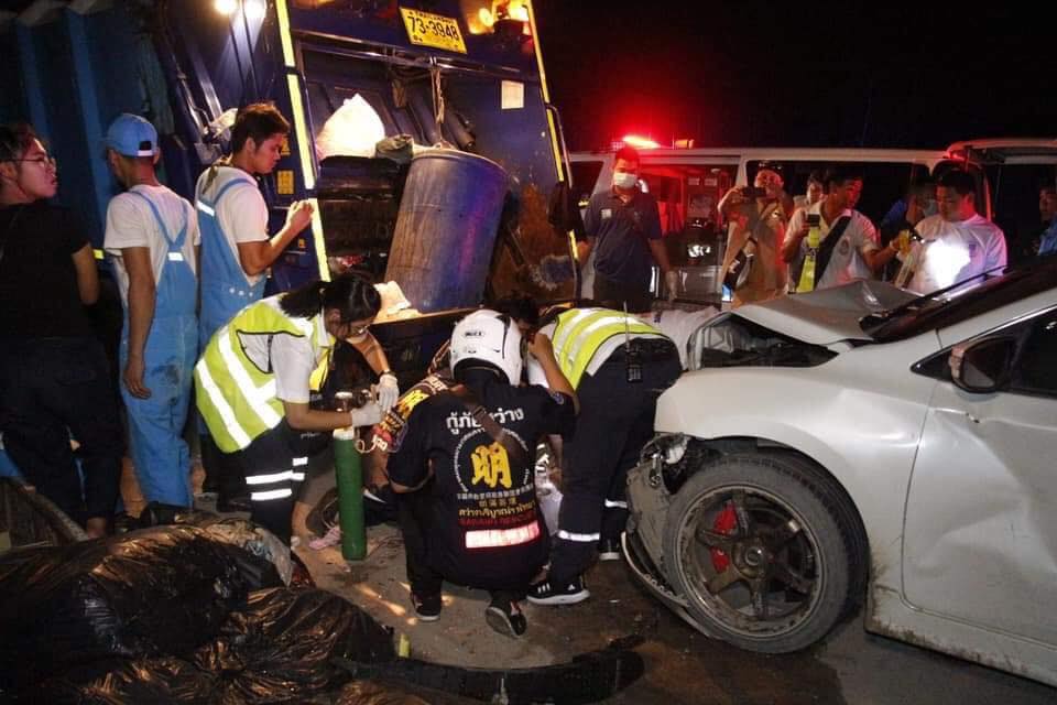 យោងតាមប្រភពព័ត៌មានបានរៀបរាប់ឲ្យុដឹងថាមានរថយន្តម៉ាក Nissan Sylphy ពាក់ស្លាកលេខ 4 กฌ 4462 បាងកក មួយគ្រឿងបើកបរយ៉ាងលឿនទៅបុកគូទរថយន្តប្រមូលសំរាម បណ្តាលឲ្យពលករប្រមូលសំរាមដែលនៅខាងក្រោយត្រូវរងរបួសធ្ងន់ស្រាលជាច្រើននាក់។ ពលករខ្មែរដែលរងគ្រោះដាច់ជើងទាំងសងខាងរូបនេះត្រូវបានគេស្គាល់ឈ្មោះថា ឈួន ប៊ុនរឿន ភេទប្រុស អាយុ ២៨ឆ្នាំ មានស្រុកកំណើតមកពីមង្គលបុរី ខេត្តបន្ទាយមានជ័យ ជាជនជាតិខ្មែរ។