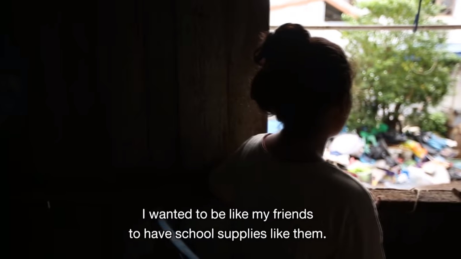 អ្នកម្តាយខ្ញុំជាអ្នកប្រកបរបររកអេតចាយ ដើរស្វែងរកសំណល់អេតចាយដែលអាចលក់បានដើម្បីយកមកលក់មានប្រាក់សម្រាប់ចាយវាយ និងសិក្សា។ ខ្ញុំឃើញម៉ែលំបាកហត់នឿយ ព្រោះគាត់ជាស្ត្រីតែម្នាក់ដែលធ្វើគ្រប់យ៉ាងដើម្បីកូន។ ពុកខ្ញុំបានចែកផ្លូវជាមួយម៉ែតាំងពីខ្ញុំនៅតូច គាត់ក៏ធ្លាប់មកលេងម្តងដែរ តែខ្ញុំមិនចាំមុខគាត់ច្បាស់នោះឡើយ ព្រោះវាយូរឆ្នាំកន្លងទៅហើយ។ ពេលទំនេរខ្ញុំតែងតែជួយម៉ែ ព្រោះចង់សម្រាលបន្ទុក និងចង់រកលុយឲ្យបានច្រើនដើម្បីបានទៅរៀន។ ថ្ងៃអនាគតខ្ញុំចង់ក្លាយជាគ្រូបង្រៀនផ្នែកសិល្បៈគំនូរ ដើម្បីមានប្រាក់ជួយគ្រួសារ ជួយម៉ែឲ្យគាត់បានញ៉ាំឆ្ងាញ់ និងគេងលក់ស្រួល»។