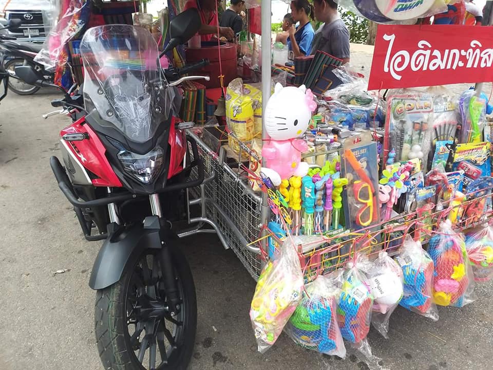 ថ្មីៗនេះមានការចែករំលែកមួយពេញប្រទេសថៃ ក្រោយមានករណីអ្នកលក់ការ៉េមម្នាក់ស្រលាញ់ម៉ូតូធំពេករហូតទិញម៉ូតូធ្វើជាម៉ូតូដើម្បីសណ្តោងលក់ការ៉េម និងរបស់ក្មេងលេងបន្តិចបន្តួច។ ជាធម្មតាយើងតែងឃើញមានប្រភេទម៉ូតូសណ្តោងរទេះលក់ជាច្រើនដូចជាមីឆា ប្រហិត កាហ្វេ ខោអាវ គ្រឿងអនុស្សាវរីយ៍ និងឥវ៉ាន់ជាច្រើនទៀត ដោយឡែកម៉ូតូសណ្តោងទាំងនោះជាប្រភេទម៉ូតូបែបធុនតូចធម្មតា និងខ្លះមានសភាពរាងចាស់ ស្រាប់តែអ្នកលក់ការ៉េមម្នាក់នេះវិញ បែរជាលេងម៉ូដម៉ូតូឡើងញាក់សាច់។