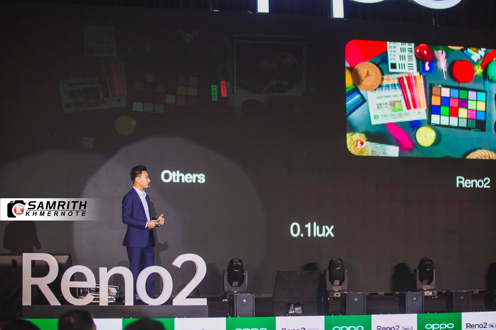 អ្វីដែលធ្វើឲ្យអ្នកចូលរួមផ្ទាល់ និង អ្នកទស្សនាការផ្សាយផ្ទាល់នៅលើទំព័រហ្វេសបុកផ្លូវការរបស់ OPPO កាន់តែភ្ញាក់ផ្អើល និង នឹកស្មានមិនដល់នោះគឺ OPPO បានឆ្លុះបញ្ចាំងនូវភាពជោគជ័យ និងការវិវត្តន៍ផ្នែកបច្ចេកវិទ្យាថ្មីៗ ទំនើបៗរបស់ខ្លួន ប្រកបដោយគុណភាពខ្ពស់នៃស្មាតហ្វូនរបស់ OPPO គ្រប់ស៊េរី ជាពិសេសស្មាតហ្វូនជំនាន់ថ្មីទាំងពីរម៉ូឌែល ដែលមាន OPPO Reno2 និង Reno2 F ។ តាមការរយៈការធ្វើបទបង្ហាញនៅក្នុងកម្មវិធីនោះ បានឲ្យដឹងថាទូរស័ព្ទ OPPO Reno2 មានតម្លៃត្រឹមតែ $599 ជាស្មាតហ្វូនថ្នាក់ខ្ពស់ តំណាងឲ្យការតស៊ូ និងភាពច្នៃប្រឌិតខ្ពស់ ដែលកើតចេញពីកំណែរទម្រង់នៃ Reno ស៊េរីមុន បំពាក់មកនូវការរចនា បែប High Show និងទាន់សម័យកាលជាងមុន ដែលបានភ្ជាប់ជាមួយនឹងផ្ទៃម៉ាស៊ីនរាបស្មើ មានអេក្រង់ AMOLED កញ្ចក់ E3 លាតពេញទំហំ 6.5” ការពារចំណាំងពន្លឺ បំពាក់បច្ចេកវិទ្យាការពារភ្នែក ដែលទទួលស្គាល់កម្រិតសុវត្ថិភាពពី TÜV Rhineland ដែលធ្វើឲ្យអ្នកប្រើប្រាស់អស់កង្វល់ជាមួយនឹងបញ្ហាភ្នែក ទោះស្ថិតក្នុងលក្ខខណ្ឌពន្លឺតិចក្តី។