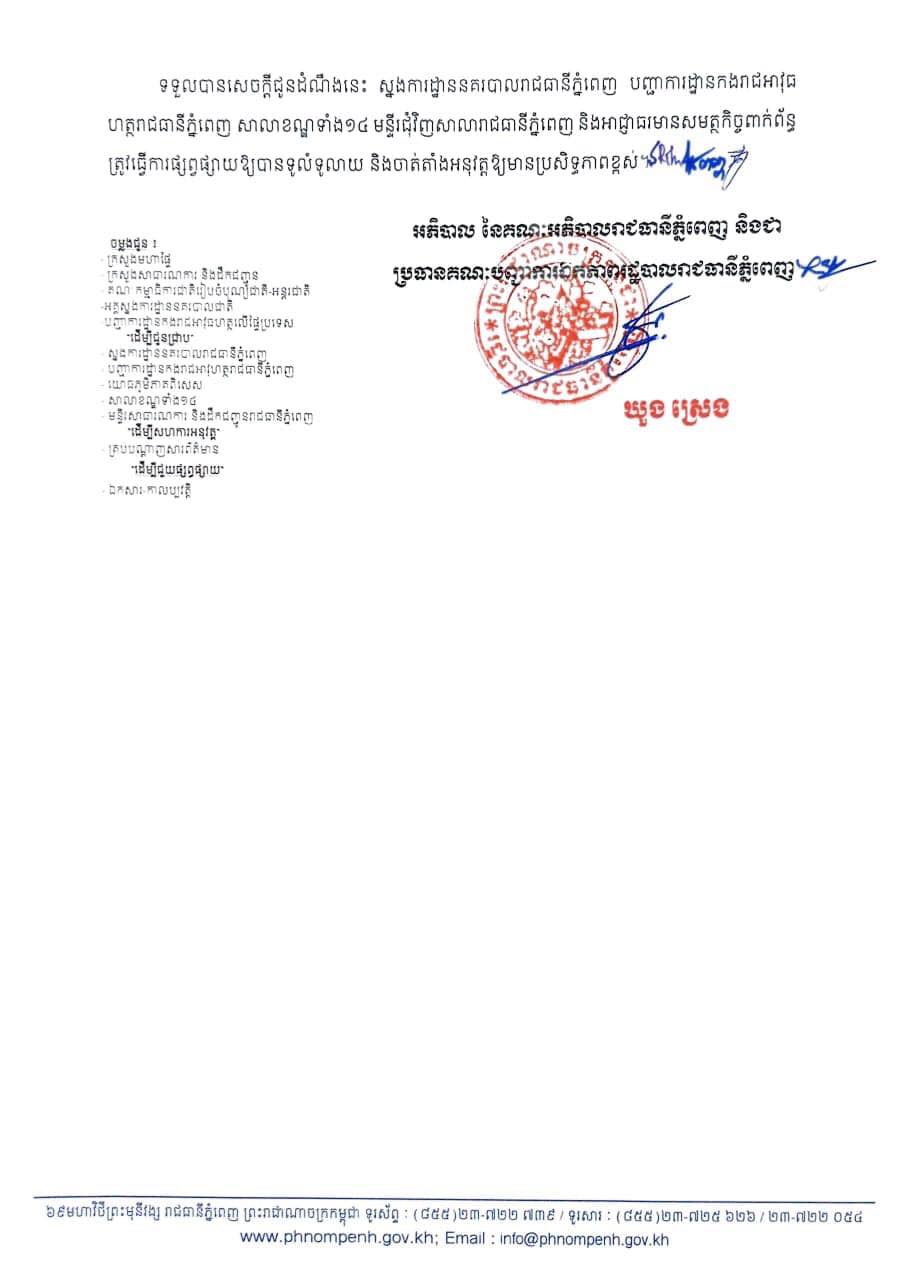 ដើម្បីកាត់បន្ថយនូវការកកស្ទចរាចរនៅរាជធានីភ្នំពេញក្នុងព្រះរាជពិធីបុណ្យអុំទូក បណ្តែតប្រទីបប និងសំពះព្រះខែ អកអំបុក ដែលនឹងប្រព្រឹត្តទៅចាប់ពីថ្ងៃទី១០ រហូតដល់ថ្ងៃទី១២ ខែវិច្ឆិកា ឆ្នាំ២០១៩ រដ្ឋបាលរាជធានីភ្នំពេញសូមជម្រាបជូនដំណឹងដល់បងប្អូនប្រជាពលរដ្ឋ ម្ចាស់ការដ្ឋានសំណង់នានា ម្ចាស់អាជីវកម្មក្រឡុកស៊ីម៉ង់ត៌ ម្ចាស់រថយន្តដឹកទំនិញគ្រប់ប្រភេទ រថយន្តឈ្នួលដឹកអ្នកដំណើរ និងម៉ូតូសណ្តោងរ៉ឺម៉កគ្រប់ប្រភេទ សូមធ្វើតាមការណែនាំខាងក្រោម៖