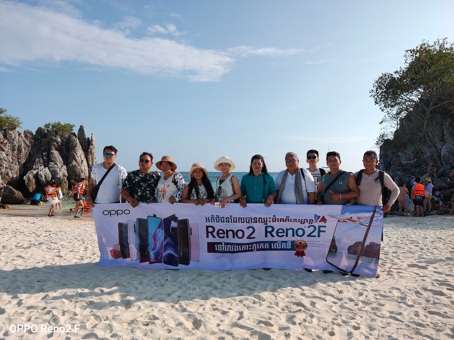 ជាក់ស្តែងកាលពីថ្មីៗនេះ ក្រុមហ៊ុន OPPO បាននាំអតិថិជន Reno2 & Reno2 F ដែលមានសំណាងទាំង9រូបដំបូងគេបង្អស់ទៅលេងកោះភូកេត ចំនួន 3យប់ 4 ថ្ងៃ ចាប់ពីថ្ងៃទី18 ដល់ 21 មករា 2020។