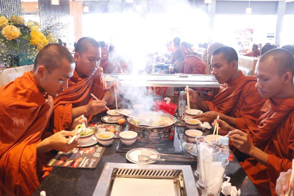 ព្រះសង្ឃចំនួន ៩៩៩អង្គ បានទទួលចង្ហាន់ BBQ ប៊ូហ្វេនិងស៊ុប តាមការនិមន្តរបស់ លោកជំទាវ ម៉ែន ភក្តី ហុកឡង់ឌី
