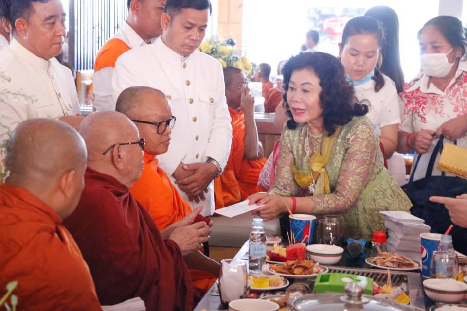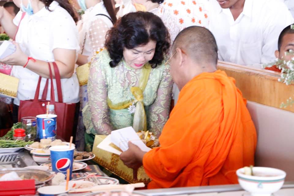 លោកជំទាវ ម៉ែន ភក្តី បានវេរប្រគេនចង្ហាន់ថ្ងៃត្រង់ ទេយ្យទានជូនដល់ព្រះសង្ឃ និងអាចារ្យ ដើម្បីឧទ្ទិសកុសលផលបុណ្យជូនចំពោះបុព្វការីជន មានមាតា បិតា ជីដូនជីតា និងញាតិការទាំង៧សន្ដាន ជាពិសេសជូនដល់ស្វាមីរបស់លោកជំទាវ គឺឯកឧត្ដម ហុក ឡង់ឌី ដែលបានចែកឋាន ព្រមទាំងមានពិធីបួងសួងសុំសេចក្តីសុខដល់ប្រទេសកម្ពុជាអោយចៀសផុតពីជំងឺផ្សេងៗ ដើម្បីអោយប្រជាជនខ្មែរទូទាំងប្រទេសបានសុខសប្បាយ៕ ប្រភព៖ សិល្បករកម្ពុជា