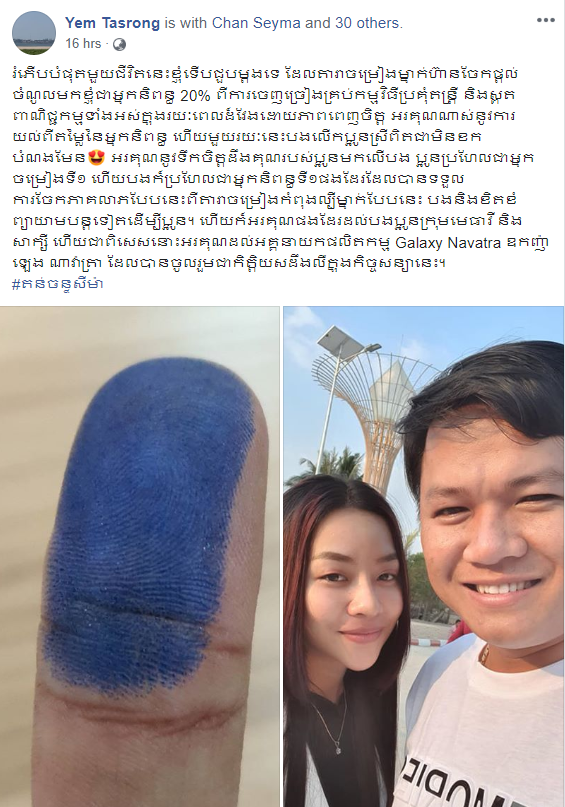 លោក យឹម តាស្រង់ រំភើបចិត្តបន្ទាប់ពីកញ្ញា តន់ ចាន់សីម៉ា ហ៊ានចែកផ្តល់ចំណូល 20% មកអ្នកនិពន្ធ