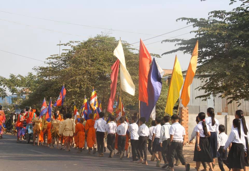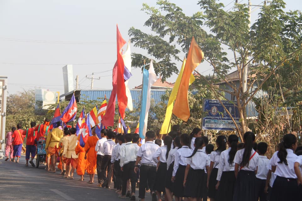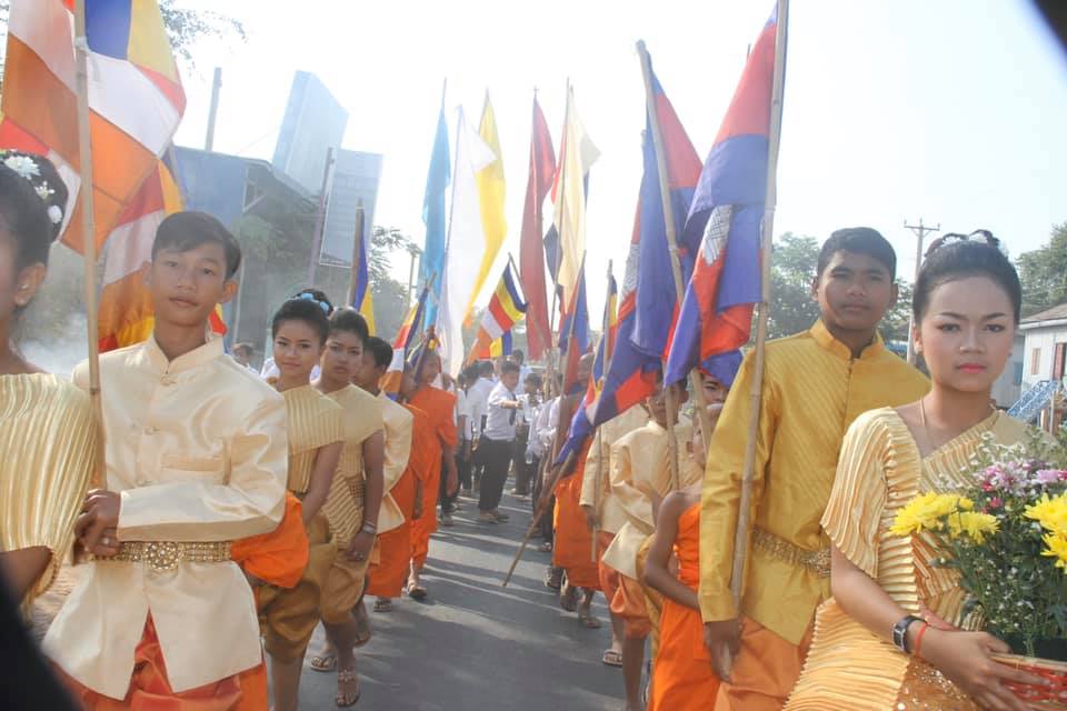 ទិដ្ឋភាពពិធីដង្ហែបុណ្យមាឃបូជា វត្តសិរីមង្គលខ្យោក ខេត្តព្រៃវែង