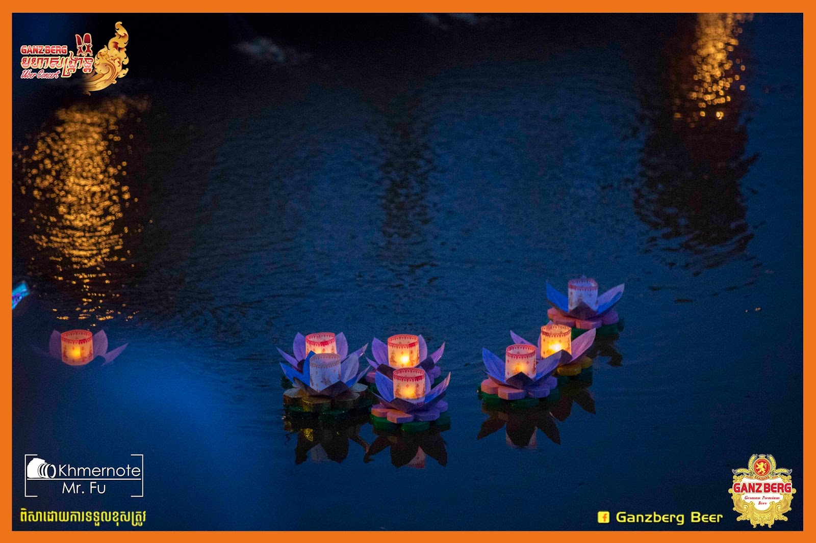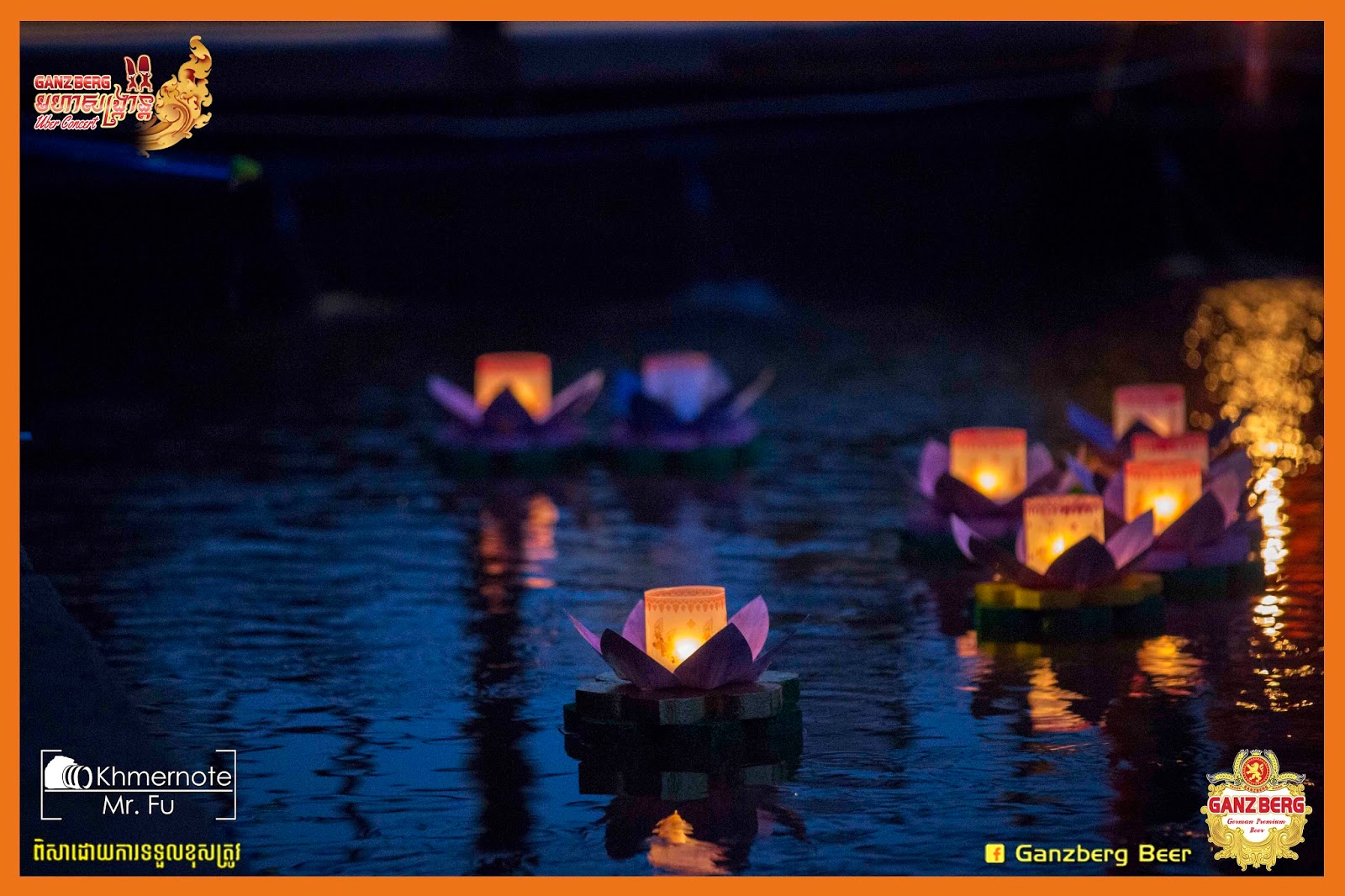 ទិដ្ឋភាពបណ្តែតគោមទឹកដ៏ស្រស់ស្អាតនាពេលរាត្រី