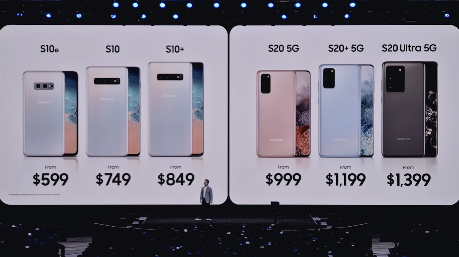 វាអាចជារឿងធម្មតាសម្រាប់ទីផ្សារស្មាតហ្វូនជំនាន់ចាស់ទាំងឡាយនឹងត្រូវធ្លាក់ថ្លៃពេលដែលជំនាន់ថ្មីរបស់ខ្លួនមានវត្តមានចូលទីផ្សារ ហើយជាក់ស្តែងសម្រាប់ Galaxy S10 នៅពេលនេះ ក្រោយការបង្ហាញខ្លួនរបស់ Galaxy S20 series ក្រុមហ៊ុន Samsung បានធ្វើការទម្លាក់ថ្លៃដល់ទៅ២០០ដុល្លារពីតម្លៃដើម ហើយទីផ្សារអាមេរិកគឺជាកន្លែងដែលមានការធ្លាក់ថ្លៃនេះមុនគេ។