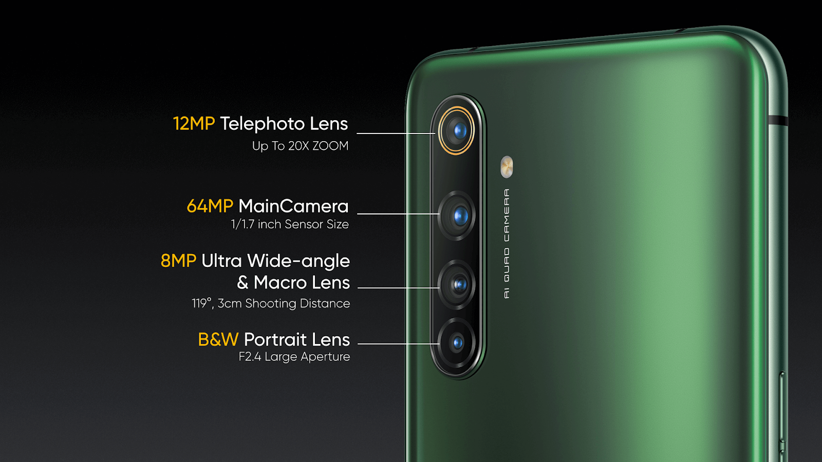 realme X50 Pro 5G កាមេរ៉ា 4 គ្រាប់ទំហំ ៦៤ មេហ្គាភិចសែល ប្រភេទ AI