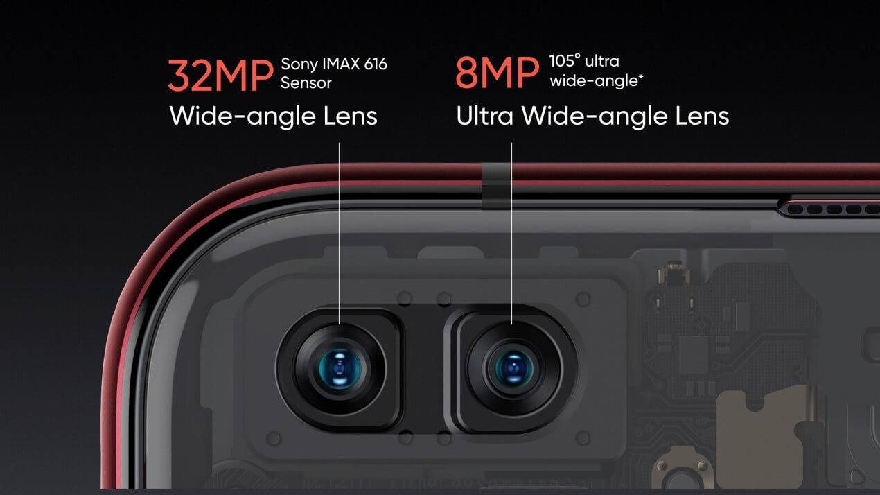 realme X50 Pro 5G ទំហំ 32 មេហ្គាភិចសែល ជាមួយកាមេរ៉ាភ្លោះ មុខថតសែលហ្វីប្លង់ទូលាយ