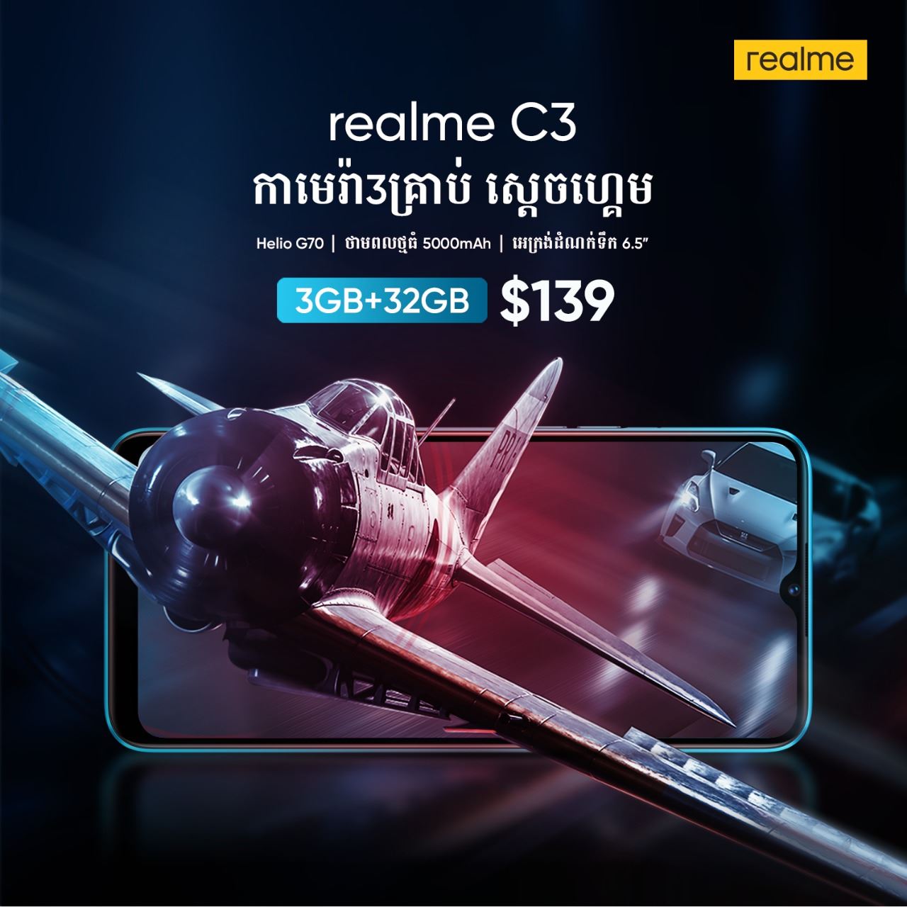 realme C3 3GB+32GB ម៉ូឌែលថ្មីបានមកដល់ហើយ នឹងបើកដាក់លក់នៅថ្ងៃនេះហើយ តម្លៃត្រឹមតែ១៣៩ដុល្លារតែប៉ុណ្ណោះ