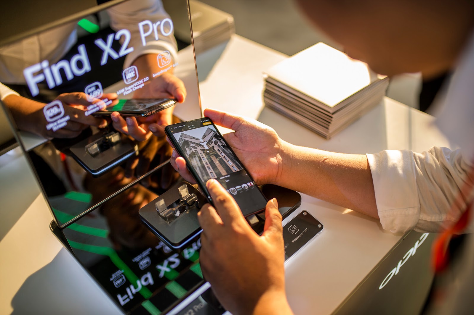 ដូច្នេះសម្រាប់អតិថិជនដែលចាប់អារម្មណ៍ចង់តេស្តសាកល្បង ទូរស័ព្ទស៊េរីថ្មីលំដាប់កំពូល OPPO Find X2 Pro នៅមជ្ឈមណ្ឌល ជួសជុលទូរស័ព្ទដៃ OPPO សាខាថ្មីផ្សារទំនើប Aeon 1 ប្រកបដោយសុវត្ថិភាព និងអស់ក្តីបារម្ភរឿងឆ្លងវីរុសកូរ៉ូណា ឬ កូវីដ19 ឬ កូរ៉ូណា ទៀតហើយ។