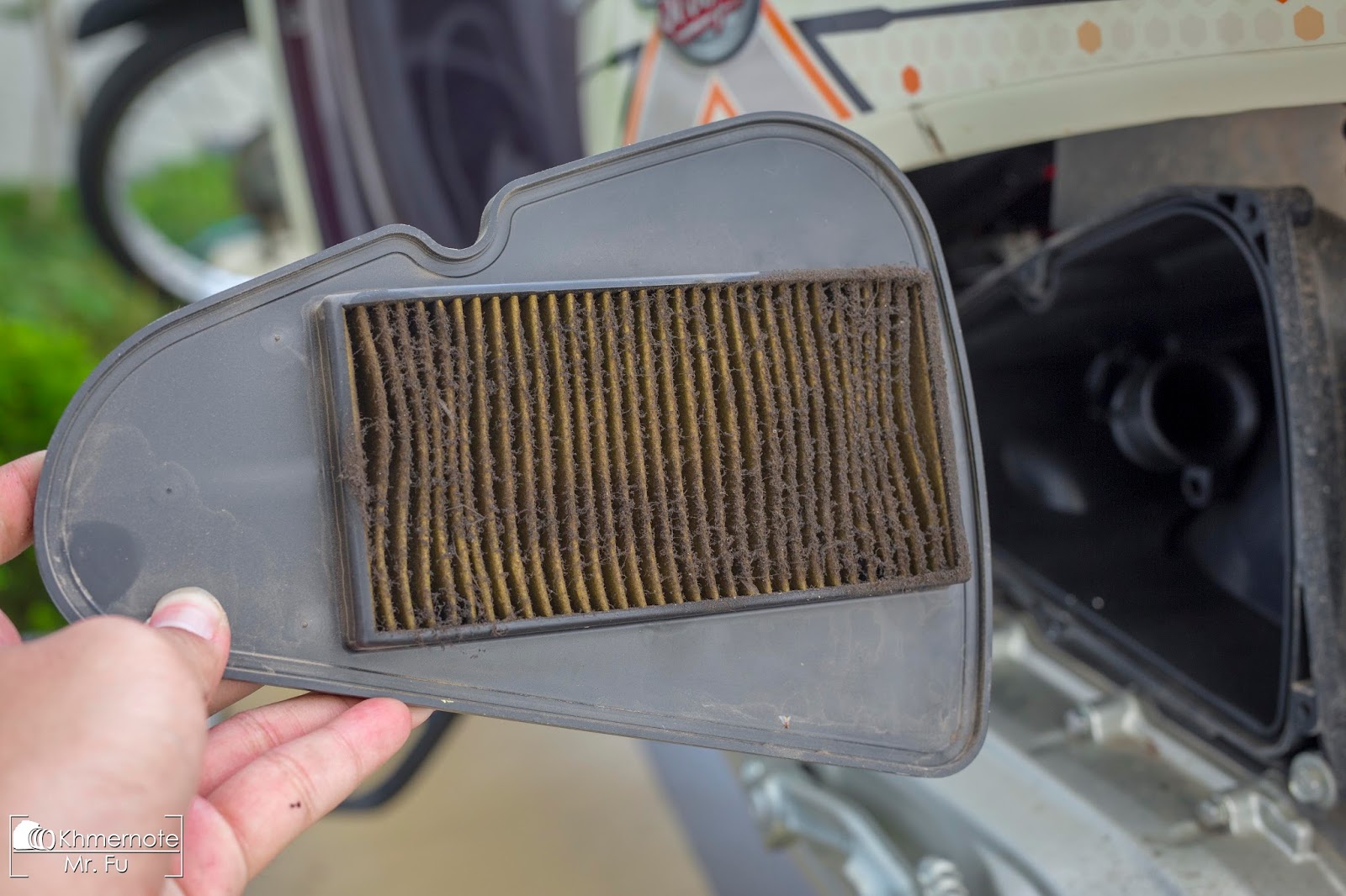 1/ អ៊ែរ៖ សម្រាប់ចំណុចនេះអ្នកអាចឆែកមើលដោយខ្លួនឯងបាន មិនបាច់រកជាងឡើយ។ ប្រសិនបើអ៊ែរម៉ូតូរបស់អ្នកពោរពេញទៅដោយដី រឺសើមទៀត នោះអ្នកត្រូវប្ដូរវាចេញ។ កាលណាអ៊ែរស្ទះ គឺអាចធ្វើឲ្យម៉ូតូដំណើរការមិនរលូន ប្រព័ន្ធខ្យល់រត់មិនបានល្អ ដែលជាហេតុនាំឲ្យម៉ាស៊ីនប្រឹងជាងមុន និងស៊ីសាំងខ្លាំងជាងមុនដែរ។