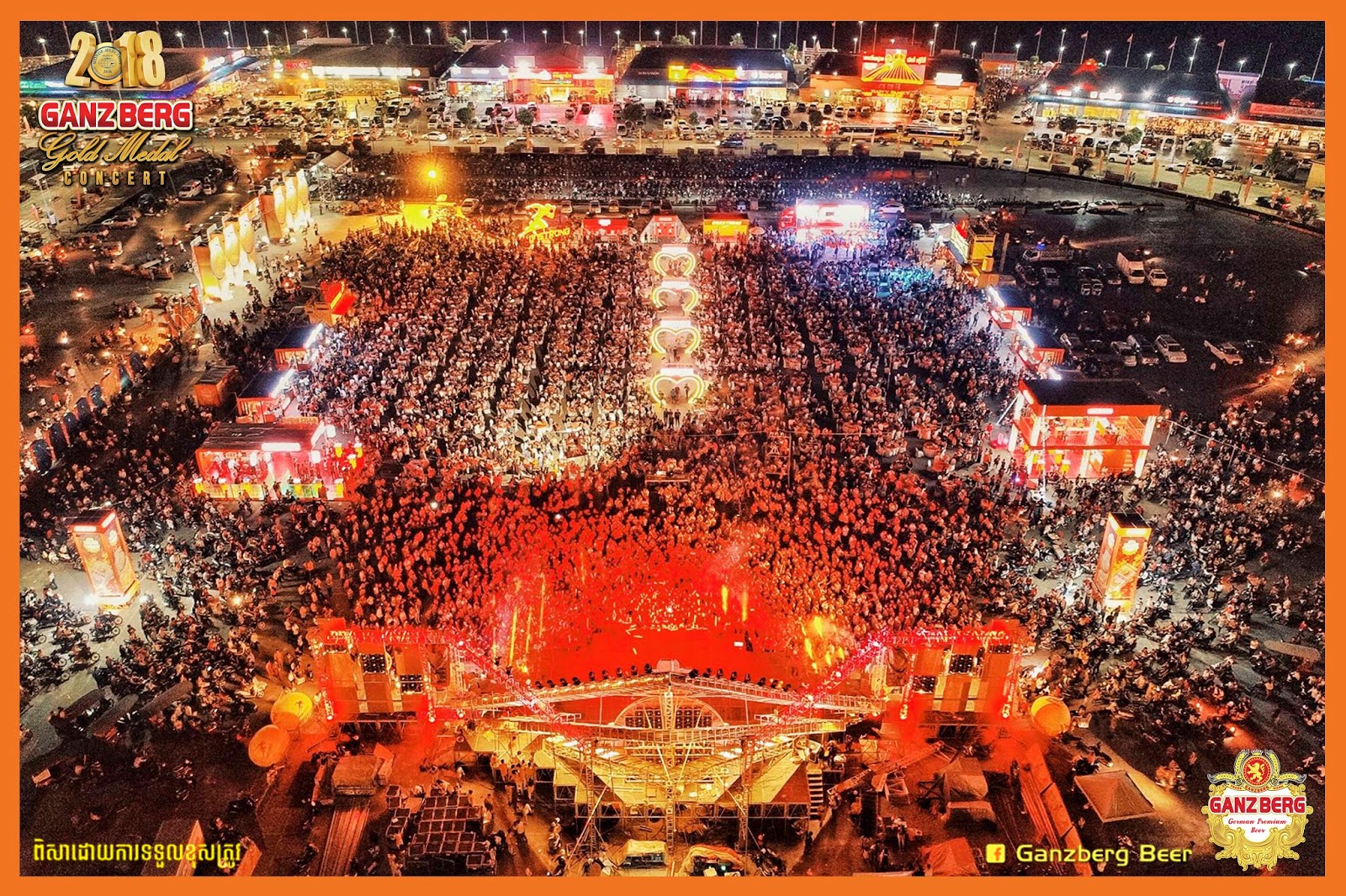 ព្រឹត្តិការណ៍ប្រគុំតន្ត្រីដ៏អស្ចារ្យនារាត្រីយប់ថ្ងៃទី ១២ ខែឧសភា ឆ្នាំ២០១៨ ដែលមានវត្តមានតារាចម្រៀងល្បីៗប្រចាំផលិតកម្មហង្សមាស និង កំពូលតារាចម្រៀងលំដាប់ថ្នាក់ពិភពលោកគឺលោក Matteo ម្ចាស់បទ PANAMA បានបង្កភាពសប្បាយរីករាយយ៉ាងខ្លាំងដល់ទស្សនិកដែលមានមកទស្សនាផ្ទាល់នៅមុខសាលមហោស្រពកោះពេជ្រ។ ទស្សនិកជនយ៉ាងច្រើនកុះករ បានចូលមកទស្សនាព្រឹត្តិការណ៍ប្រគុំតន្ត្រី ដ៏អស្ចារ្យ នេះដោយភាពសប្បាយរីករាយយ៉ាងខ្លាំង ហើយក៏អបអរសាទរចំពោះក្រុមហ៊ុនស្រាបៀរ GANZBERG ដែលបានឈ្នះមេដាយមាសលំដាប់ថ្នាក់ពិភពលោក ពីស្ថាប័នកំពូល MONDE SELECTION រយៈពេល២ឆ្នាំជាប់ៗគ្នា។ ទិដ្ឋភាពដ៏អស្ចារ្យនេះ យើងក៏សូមបង្ហាញប្លង់ពីលើអាកាសចំនួន១០សន្លឹក ដែលបង្ហាញពីភាពសប្បាយរីករាយ កាលពីយប់មិញនេះ ជាមួយវត្តមានតារាចម្រៀងល្បីៗ និងម្ចាស់បទ PANAMA៕