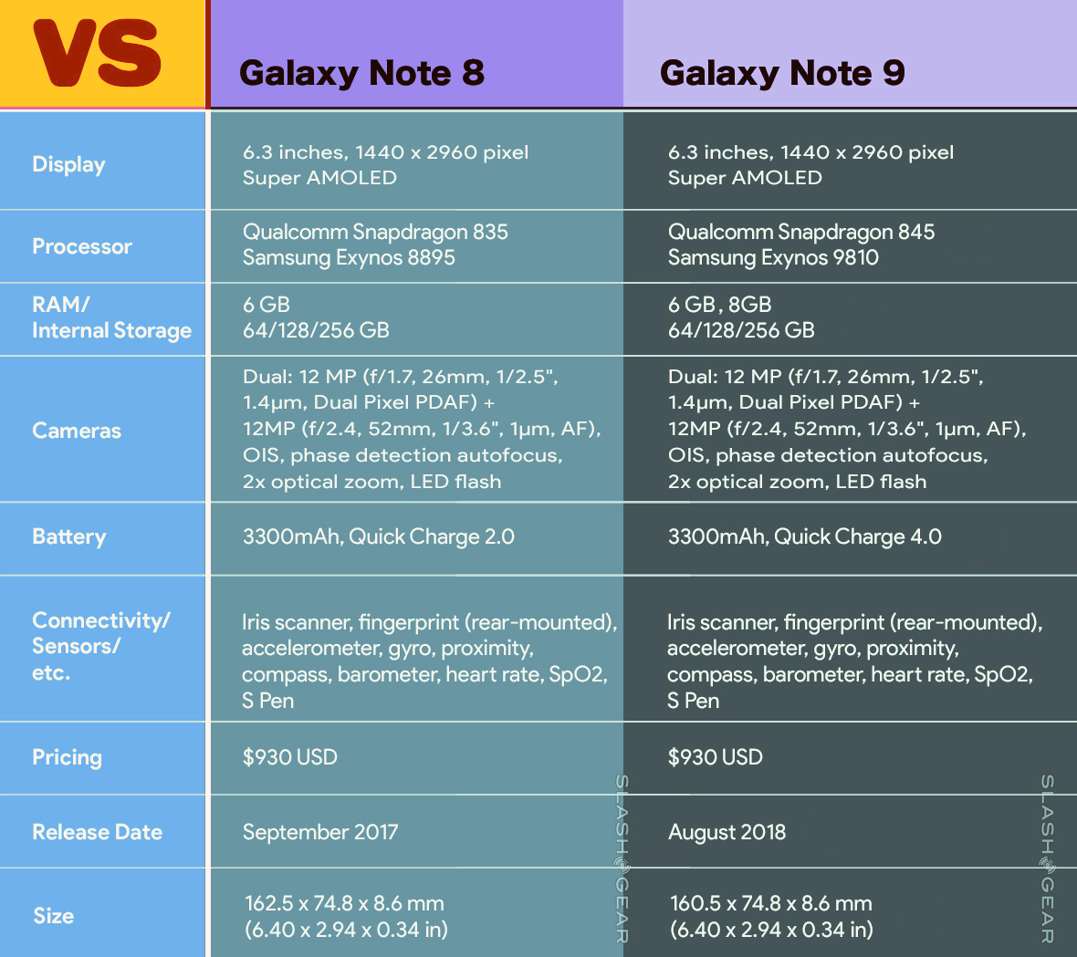 នៅផ្នែកខាងក្រោម កាមេរ៉ាត្រូវបានករចនាថ្មីប្តូរមកជាបញ្ឈដូច Galaxy S9 វិញ និងមានកន្លែងស្គែនក្រយ៉ៅដៃនៅក្រោមកាមេរ៉ាដូចគ្នា ដើម្បីងាយស្រួលក្នុងការស្គែន។ Note 9 ត្រូវបានគេរំពឹងថា មានទំហំអេក្រង់ដូចមុន 6.3 -inch (1440 x 2960 pixel) បំពាក់បន្ទះឈីប Qualcomm Snapdragon 845 មាន RAM ទំហំ 6GB និង 8GB មានថ្មទំហំ 3300mAh និងមានបច្ចេកវិទ្យា Quick Charge 4.0។ Galaxy Note 9 ប្រហែលជាបង្ហាញខ្លួននៅក្នុងខែសីហាខាងមុខនេះ ប៉ុន្តែទោះជាយ៉ាងណាមិនទាន់មានការអះអាងណាមួយពីក្រុមហ៊ុន Samsung នៅឡើយទេ។ ខាងក្រោមនេះគឺជារូបរាងរបស់ Galaxy Note 9 ដែលគេរំពឹងថា នឹងបង្ហាញខ្លួន៕