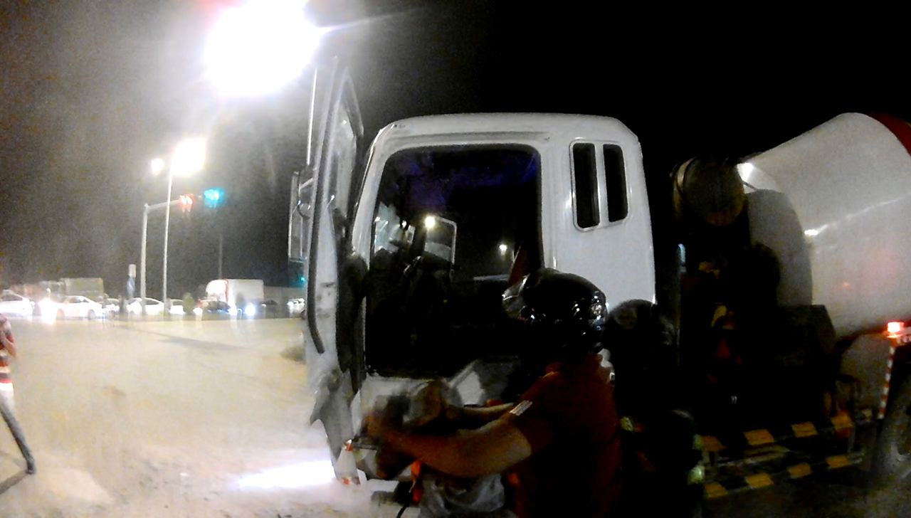 បើករថយន្តក្រឡុកស៊ីម៉ងត៍កៀរម៉ូតូមន្ត្រីម្នាក់ បណ្តាលឲ្យដួល ហើយបើករត់ ត្រូវសមត្ថកិច្ចប្រដេញតាម ដាក់ម៉ូតូបាំងពីមុខហើយនៅមិនព្រមឈប់ទៀត ទាល់តែសមត្ថកិច្ចផ្ទុះអាវុធមួយគ្រាប់ទើបឃាត់បាន