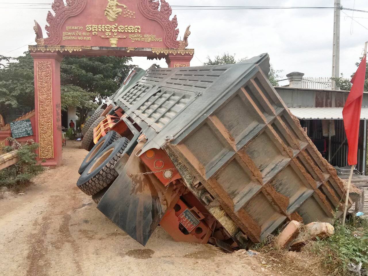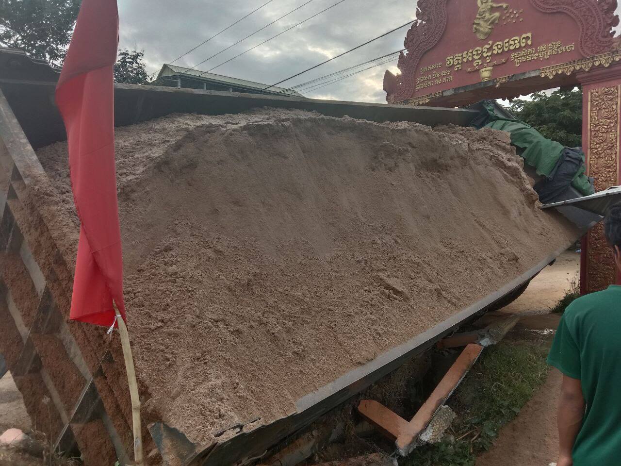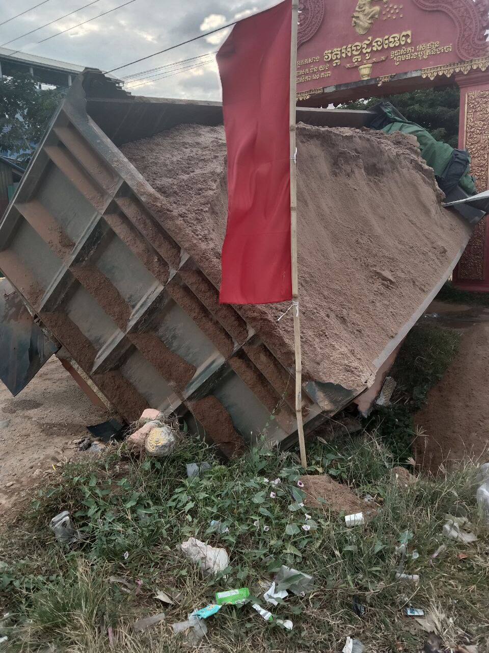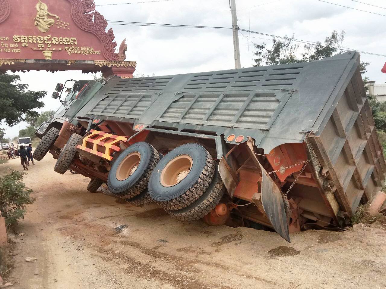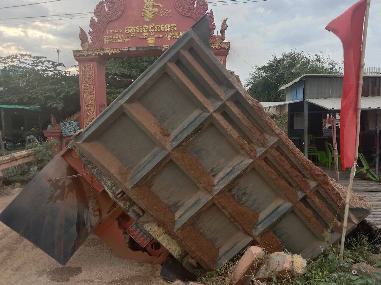 ខ្ទេចអស់ហើយ! រថយន្តដឹកខ្សាច់មួយគ្រឿងដឹកធ្ងន់ពេក ធ្វើឲ្យបាក់ស្រុតស្ពានសាធារណៈមួយ នៅមុខក្លោងទ្វារវត្តអង្គដូនទេព