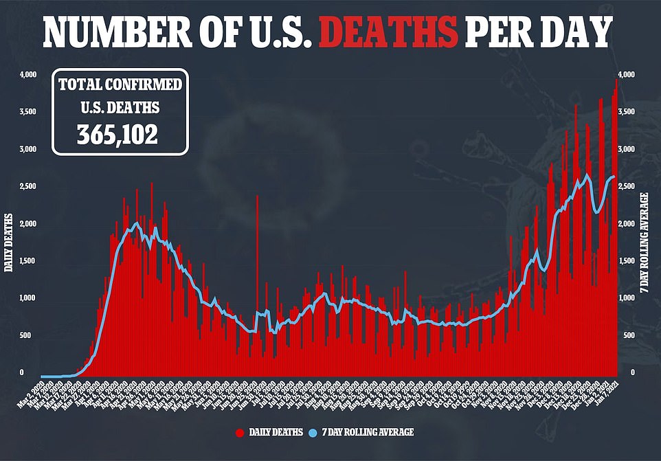 សហរដ្ឋអាមេរិកបានឈានដល់កំណត់ត្រាថ្មីមួយទៀតកាលពីថ្ងៃព្រហស្បតិ៍ ខណៈដែលការស្លាប់ជារៀងរាល់ថ្ងៃដោយជំងឺ COVID-19 បានកើនឡើងដល់ ៤,០០០ នាក់ ជាលើកដំបូងបំផុត។ យោងតាមទិន្នន័យពីគម្រោងតាមដានជំងឺ COVID-19 បានបង្ហាញថា ជនជាតិអាមេរិកចំនួន ៤,០៣៣ នាក់ បានស្លាប់ដោយសារជំងឺ COVID-19 ក្នុងរយៈពេល ២៤ ម៉ោងចុងក្រោយនេះ នៅចំពេលដែលការឆ្លងថ្មីៗនៅទូទាំងប្រទេស នៅតែបន្តកើនឡើងបន្ទាប់ពីថ្ងៃឈប់សម្រាកហើយក្ដី។