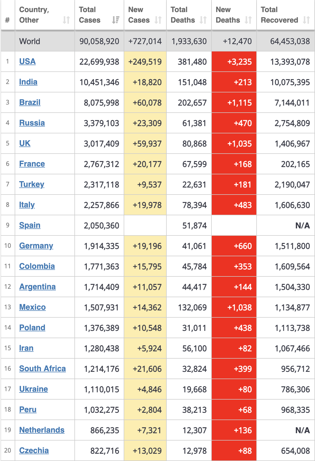 គួរបញ្ជាក់ផងដែរថា តាមតួលេខខាងលើ សហរដ្ឋអាមេរិកឈរនៅលេខរៀងទីមួយក្នុងពិភពលោក ដែលមានចំនួនអ្នកឆ្លង និងស្លាប់ដោយសារវីរុសកូវីដ-១៩ ច្រើនជាងគេ។