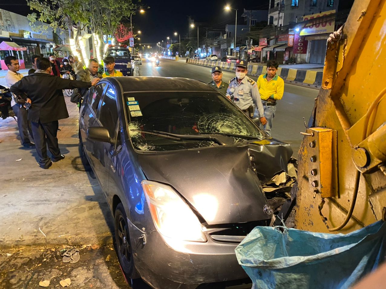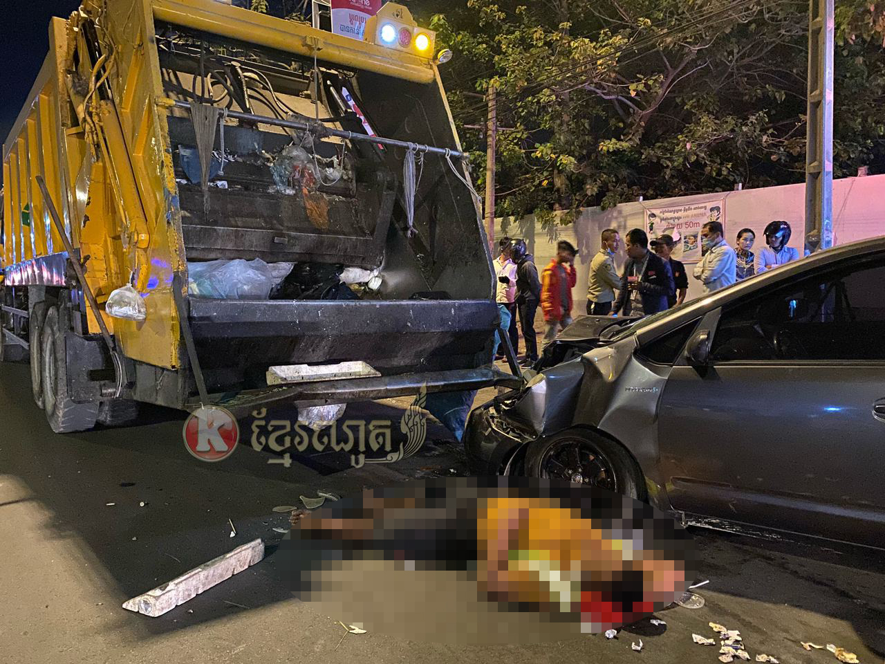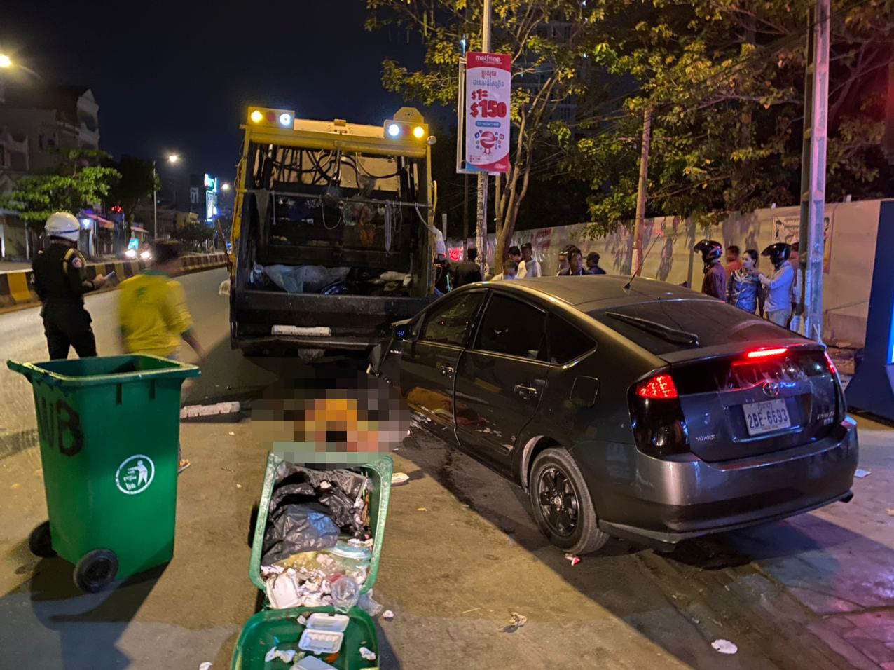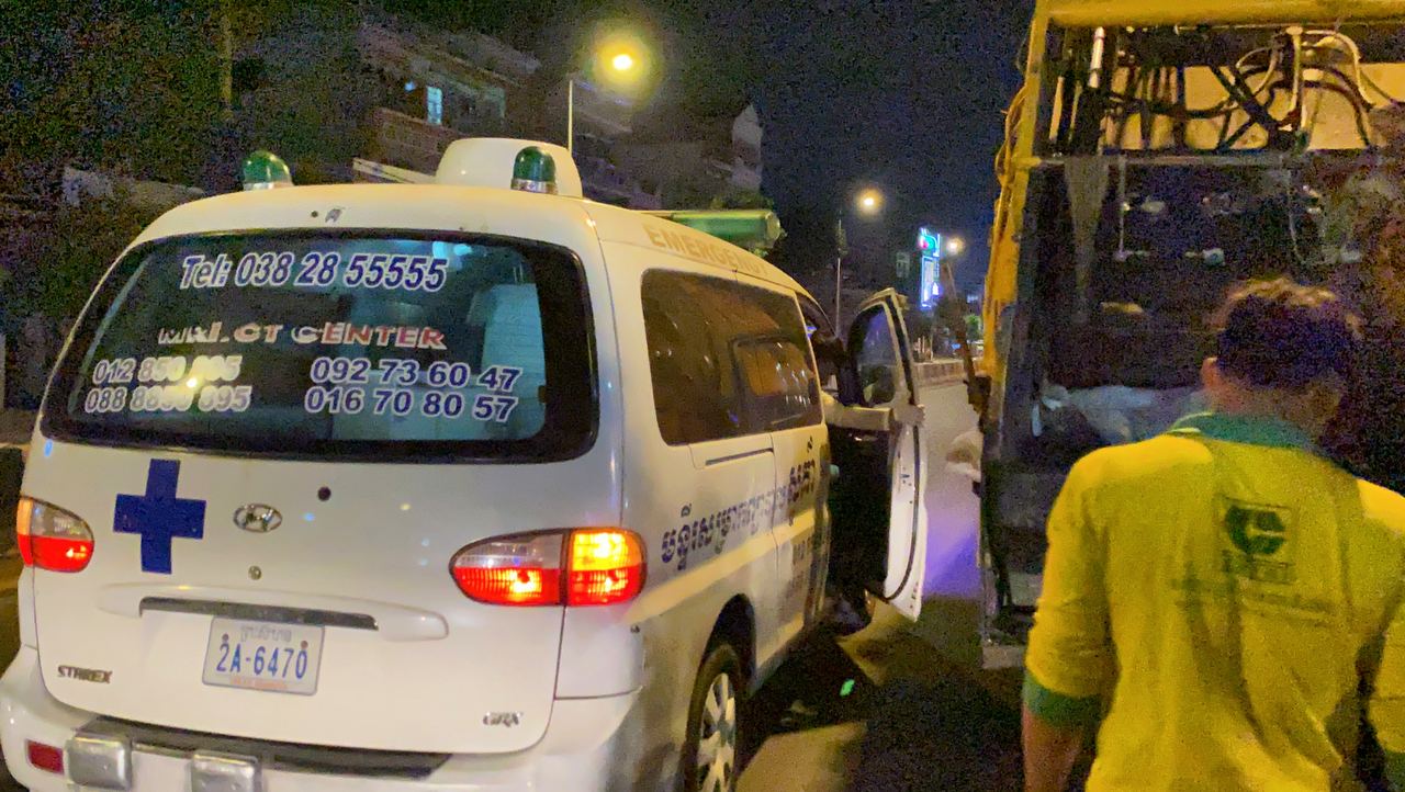 រាជធានីភ្នំពេញ ៖ បុរសម្នាក់ដែលតែងតែដើរបោសសម្អាតមុខផ្ទះគេ និងមុខក្រុមហ៊ុនផ្សេងៗនៅតាមផ្លូវជាតិលេខ២ ម្ដុំចាក់អង្រែក្រោម បានស្លាប់បាត់បង់ជីវិត ក្រោយពីក្រុមគ្រូពេទ្យជួយសង្គ្រោះអស់ពីលទ្ធភាព បន្ទាប់ពីកាយសំរាមរកសំបកកំប៉ុង ជាមួយរថយន្តដឹកសំរាមក្រុមហ៊ុនស៊ិនទ្រីសុខៗ ស្រាប់តែមានបុរស៣នាក់ ទំនងជាស្រវឹងស្រា បានបើករថយន្ត PRIUS យ៉ាងលឿនទៅបុកពីក្រោយរថយន្តប្រមូលសំរាមស៊ីនទ្រី បណ្ដាលឲ្យមនុស្ស៣នាក់រងរបួសធ្ងន់និងស្រាល ។