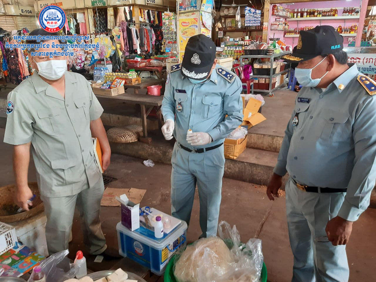 ខេត្តកំពង់ចាម៖ តាមការចុះផ្សាយរបស់ អគ្គ.ការពារអ្នកប្រើប្រាស់ កិច្ចការប្រកួតប្រជែង និងបង្ក្រាបការក្លែងបន្លំ បានឲ្យដឹងថា៖ នៅថ្ងៃពុធ ១៥រោច ខែបុស្ស ឆ្នាំជូត ទោស័ក ព.ស.២៥៦៤ ត្រូវនឹងថ្ងៃទី១៣ ខែមករា ឆ្នាំ២០២១ មន្រ្តីសាខា ក.ប.ប. ខេត្តកំពង់ចាម ដោយមានការសហការពីមន្ត្រីមន្ទីរពាណិជ្ជកម្មខេត្ត និងគណៈកម្មការផ្សារ បានចុះត្រួតពិនិត្យផលិតផលទំនិញ និងម្ហូបអាហារ នៅផ្សារ ៧មករា និងដេប៉ូចែកចាយ ស្ថិតនៅឃុំសំបូមាស ក្រុងកំពង់ចាម ខេត្តកំពង់ចាម។