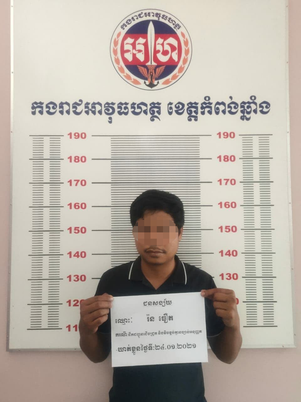 យោងតាមការបញ្ជាក់ពី កងរាជអាវុធហត្ថខេត្តកំពង់ឆ្នាំ បានឲ្យដឹងថា នៅវេលាម៉ោង ២៣:៣០ នាទី ថ្ងៃទី២៣ ខែមករា ឆ្នាំ២០២១ នៅចំណុចស្ពានស្រះអង្កាម ស្ថិតក្នុងភូមិថ្មកែវ ឃុំស្វាយជ្រុំ ស្រុករលាប្អៀរ កម្លាំងកងរាជអាវុធហត្ថ ដឹកនាំដោយលោក វរសេនីយ៍ឯក ហង្ស សុជាតិ មេបញ្ជាការរង កងរាជអាវុធហត្ថខេត្តដោយមានការសម្របសម្រួលពីព្រះរាជអាជ្ញាអមសាលាដំបូងខេត្ត បានចុះធ្វើការឃាត់ខ្លួនម្ចាស់ និងរថយន្ត ០១ គ្រឿង ម៉ាក Lexus ពណ៌ខ្មៅ ស្លាកលេខ ព្រះសីហនុ 2A- 7015 បើកបរដោយឈ្មោះ រ៉ត ធឿន ភេទប្រុស អាយុ ២៩ ឆ្នាំ ទីលំនៅភូមិព្រែកឆ្កោក ឃុំពាមឯក ស្រុកឯកភ្នំ ខេត្តបាត់ដំបង ដែលជាប់ពាក់ព័ន្ធនឹងករណីដឹកជញ្ជូនជើងជ្រូក និងវេចខ្ចប់ដោយគ្មានច្បាប់អនុញ្ញាត។