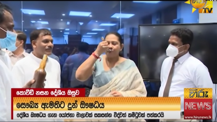 រដ្ឋមន្រ្តីក្រសួងសុខាភិបាលនៃប្រទេសស្រីលង្កាបានឆ្លងជំងឺកូវីដ១៩ ក្រោយទើបផ្សព្វផ្សាយពីសុីរ៉ូមឱសថបុរាណដើម្បីអាចការពារជំងឺកូវីដ១៩។ បើតាមការចុះផ្សាយរបស់សារព័ត៌មាន BBC បានឱ្យដឹងថា រដ្ឋមន្ត្រីក្រសួងសុខាភិបាលលោកស្រី Pavithra Wanniarachchi បានធ្វើតេស្តវិជ្ជមានជំងឺកូវីដ១៩ កាលពីថ្ងៃសុក្រ ហើយគាត់ធ្លាប់ជាអ្នកផ្សព្វផ្សាយពីសុីរ៉ូមម៉្យាងដែលផលិតដោយបុរសម្នាក់ ដោយបានអះអាងថា វាមានប្រសិទ្ធភាពប្រឆាំងនឹងវីរុសបានយូរអង្វែង។ ជម្រាបដែរថា ប្រទេសនេះមានករណីជំងឺកូវីដ១៩ សរុបចំនួន ៥៦ ០៧៦ ករណី និងការស្លាប់មានចំនួន ២៧៦ ករណី។