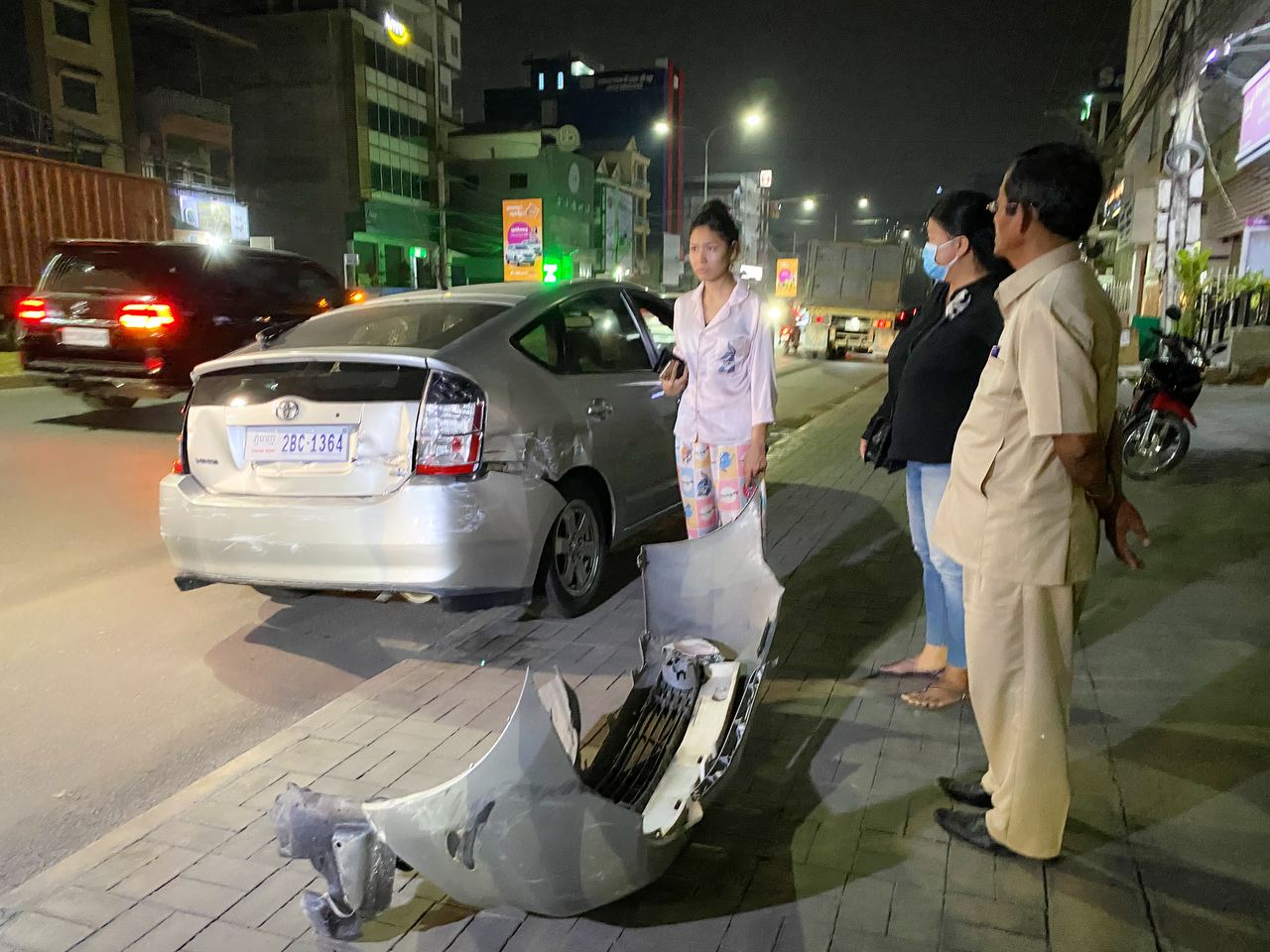 សាក្សីដែលឃើញហេតុការណ៍ផ្ទាល់បានរៀបរាប់ប្រាប់ក្រុមការងារខ្មែរណូតយើងថា ដំបូងឡើយគេឃើញនារីម្នាក់ បើករថយន្តមួយគ្រឿង ម៉ាកតូយ៉ូតាព្រូស (Toyota Prius) ពណ៌ទឹកប្រាក់ ពាក់ស្លាកលេខភ្នំពេញ 2BC-1364 បានធ្វើដំណើរតាមផ្លូវជាតិលេខ១ ក្នុងទិសដៅពីកើតទៅលិចស្របទិសគ្នាជាមួយរថយន្តកុងតឺន័រមួយគ្រឿងទៀត ពណ៌ស ពាក់ស្លាកលេខព្រះសីហនុ 3A-6001 ដែលបើកបរដោយបុរសម្នាក់ បានបើកទន្ទឹមគ្នា តែមកដល់ចំណុចម្ដុំមុខវត្តវាលស្បូវ ស្រាប់តែរថយន្តបង្កហេតុ ប្រភេទកុងតឺន័រសណ្ដោងកន្ទុយដឹកដែករាប់តោននេះ បានមកដេញកៀររថយន្ត Toyota Prius របស់នារីខាងលើ បណ្ដាលឲ្យបែកស្តុប និងកាងខាងក្រោយបន្តិចបន្តួច ហើយរថយន្តបង្កមិនឈប់ទទួលខុសត្រូវទេ បានព្យាយាមបើករត់ចេញពីកន្លែងកើតហេតុធ្វើព្រងើយ តែត្រូវនារីរូបស្រស់ខាងលើបន្ថែមល្បឿនរថយន្ត ដេញតាមជិត៣គីឡូម៉ែត្រ ទើបតាមទាន់ ហើយក៏សម្រេចចិត្តបួងចង្កូតរថយន្តទៅខាងឆ្វេងដៃ រួចជាន់ហ្រ្វាំងឈប់ពីមុខបាំងពីមុខរថយន្តបង្កហេតុ ដើម្បីអោយរថយន្តបង្កឈប់ហើយចុះមកដោះស្រាយ តែអ្នកបើកបររថយន្តកុងតឺន័រ មិនឈប់ឡើយ បែរជាបើកទៅបំបុករថយន្តព្រូសរបស់នាង អូសជាង៥ម៉ែត្រទៀតទើបឈប់ បណ្តាលឲ្យរថយន្ត Toyota Prius រងការខូចខាតយ៉ាងដំណំ តែមិនធ្វើឲ្យនារីនេះ ឬប្រជាពលរដ្ឋណាម្នាក់រងរបួសឡើយ ។