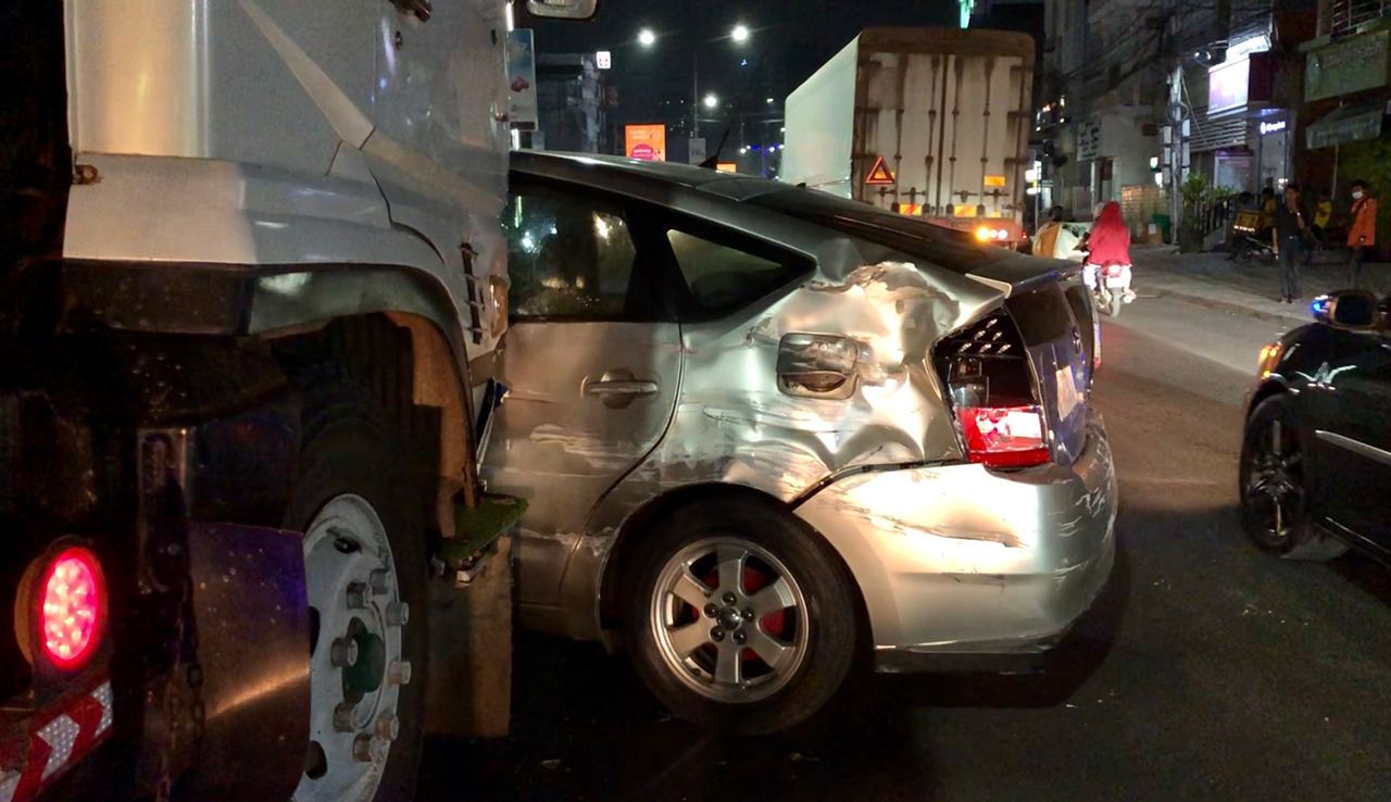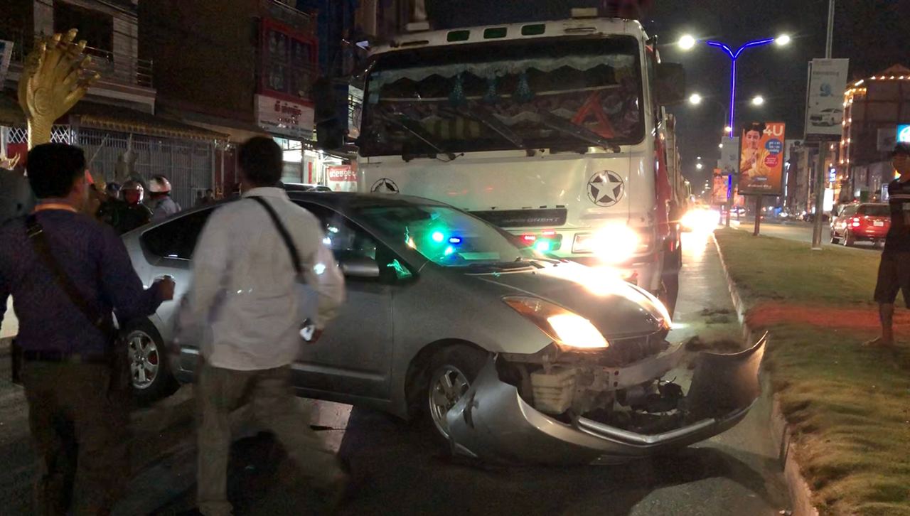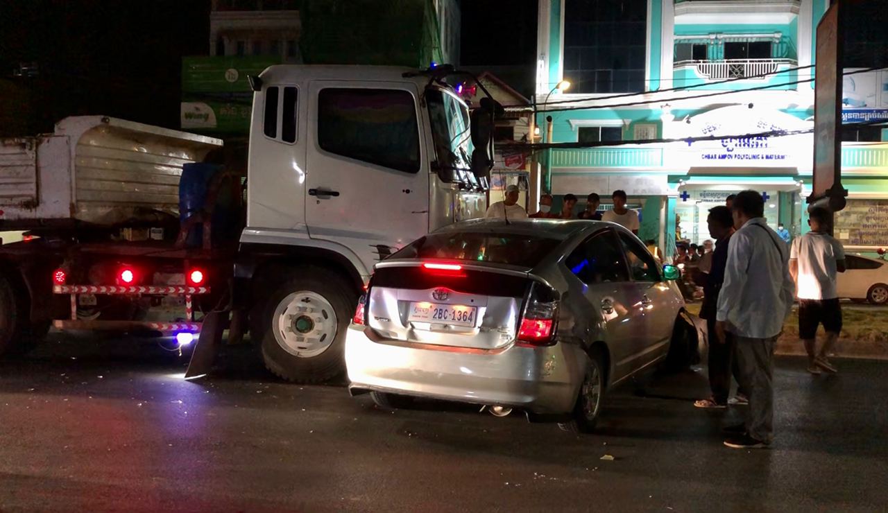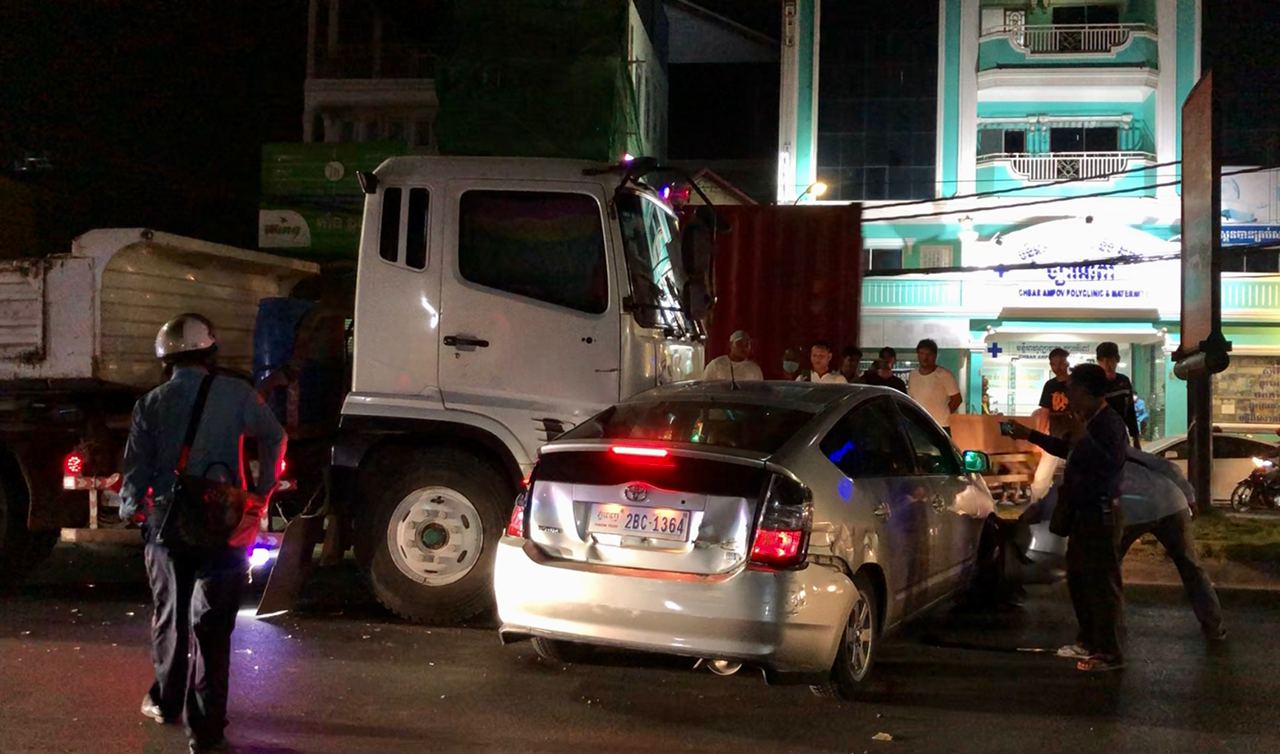 រាជធានីភ្នំពេញ ៖ នារីម្នាក់បើករថយន្តតូយ៉ូតាព្រូស ខឹងបុរសម្នាក់ជាអ្នកបើករថយន្តកុងតឺន័រសណ្ដោងកន្ទុយដឹកដែករាប់តោន ដែលមកបុករថយន្តរបស់នាងពីក្រោយ បណ្ដាលឲ្យខូចខាតបន្តិចបន្តួច ហើយមិនព្រមឈប់ទទួលខុសត្រូវ បានព្យាយាមបើករត់ធ្វើព្រងើយ ទើបនាងខឹងពេកបើករថយន្តដេញតាមទៅឈប់ពីមុខរថយន្តបាំងពីមុខដើម្បីដោះស្រាយ បែរជារថយន្តកុងតឺន័របើកទៅបុកអូសបន្ថែមជាច្រើនម៉ែត្រទៀត បណ្ដាលឲ្យរងការខូចខាតយ៉ាងដំណំ ។ ហេតុការណ៍គ្រោះថ្នាក់ចរាចរណ៍នេះបានបង្កការភ្ញាក់ផ្អើលឡើងកាលពីវេលាម៉ោង១០:០០នាទីយប់ ថ្ងៃទី២៣ ខែមករា ឆ្នាំ២០២១នេះ នៅតាមផ្លូវជាតិលេខ១ ទល់មុខមន្ទីរសម្រាកព្យាបាល ច្បារអំពៅ ស្ថិតនៅភូមិដើមស្លែង សង្កាត់ច្បារអំពៅទី២ ខណ្ឌច្បារអំពៅ ។