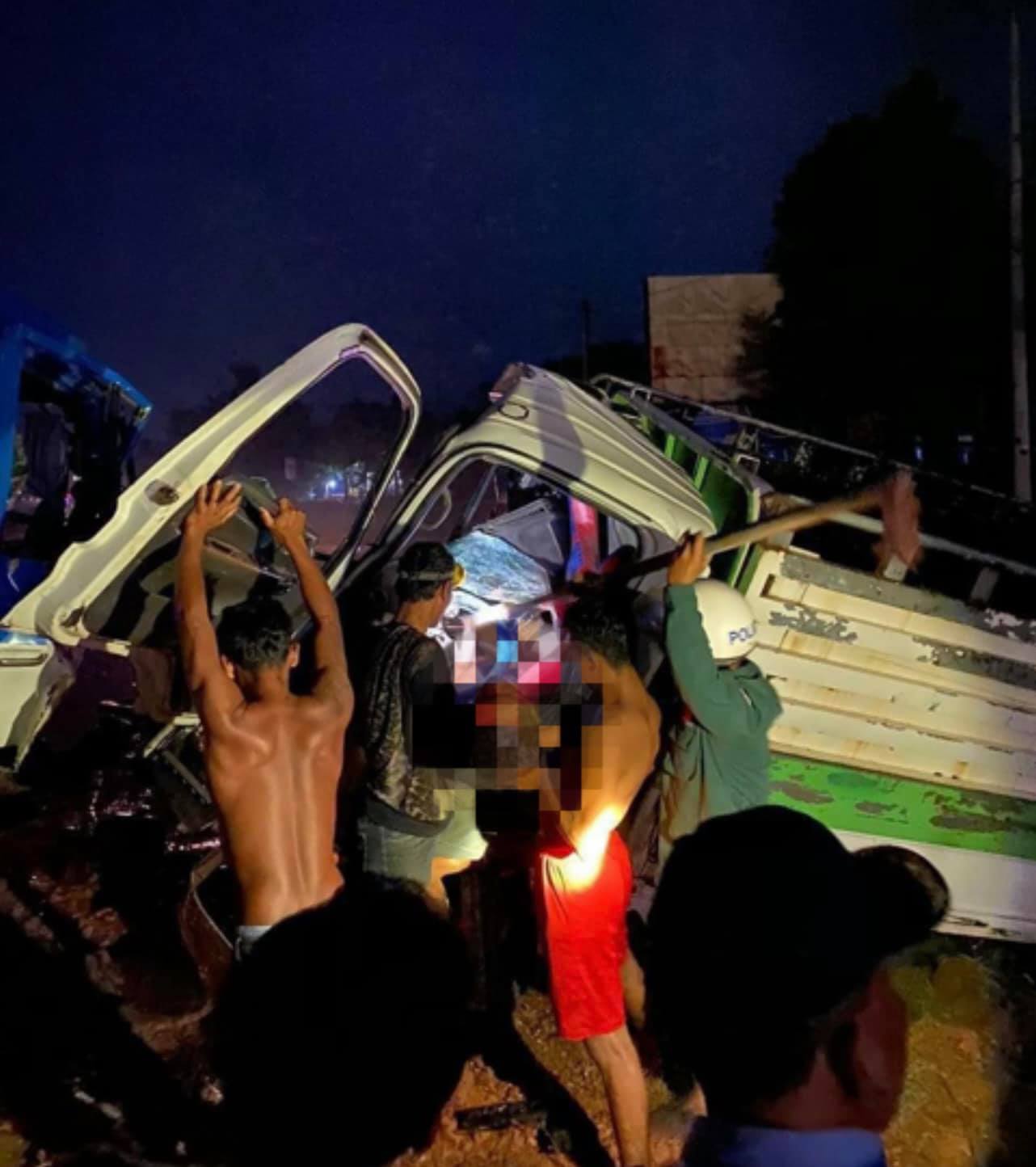 រថយន្តធុនធំ៣គ្រឿងបុកបន្តគ្នានៅស្រុកព្រៃនប់ បណ្តាលឲ្យមនុស្សម្នាក់គៀបជាប់ក្នុងកាប៉ីនរថយន្ត