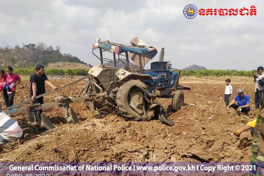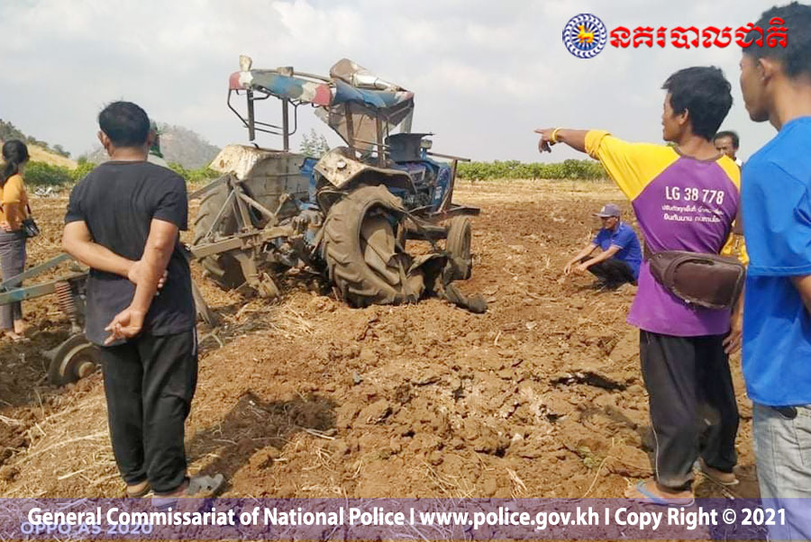ខេត្តបាត់ដំបង៖ តាមការចុះផ្សាយផេក ហ្វេស ប៊ុករបស់ ស្នងការដ្ឋាននគរបាលខេត្តបាត់ដំបង បានឲ្យដឹងថា លោកពូម្នាក់នេះ អាចចាត់ទុកថាជាមហារសំណាងទៅចុះព្រោះផ្ទុះមីនតោនមួយគ្រាប់ខូចត្រាក់ទ័រស្ទើរទាំងស្រុង តែជនរងគ្រោះត្រឹមតែរងរបួសស្រាល ហេតុការណ៍នេះកើតឡើងនៅព្រឹកថ្ងៃទី២៦ ខែមករា ឆ្នាំ២០២១ វេលាម៉ោង១០និង៣០នាទី នៅចំណុចភូមិស្រះចក ឃុំសន្តិភាព ស្រុកសំពៅលូន ខេត្តបាត់ដំបង។