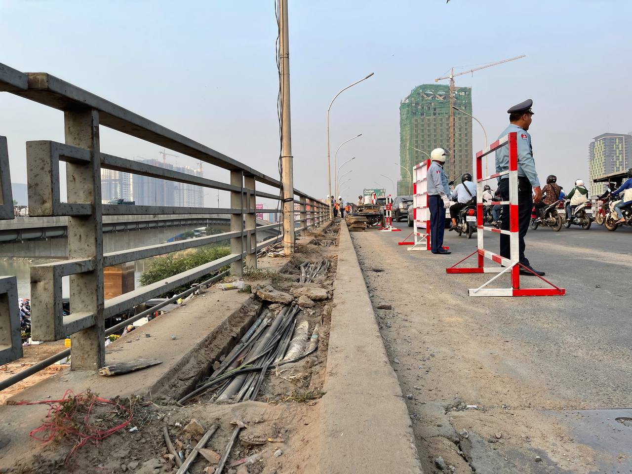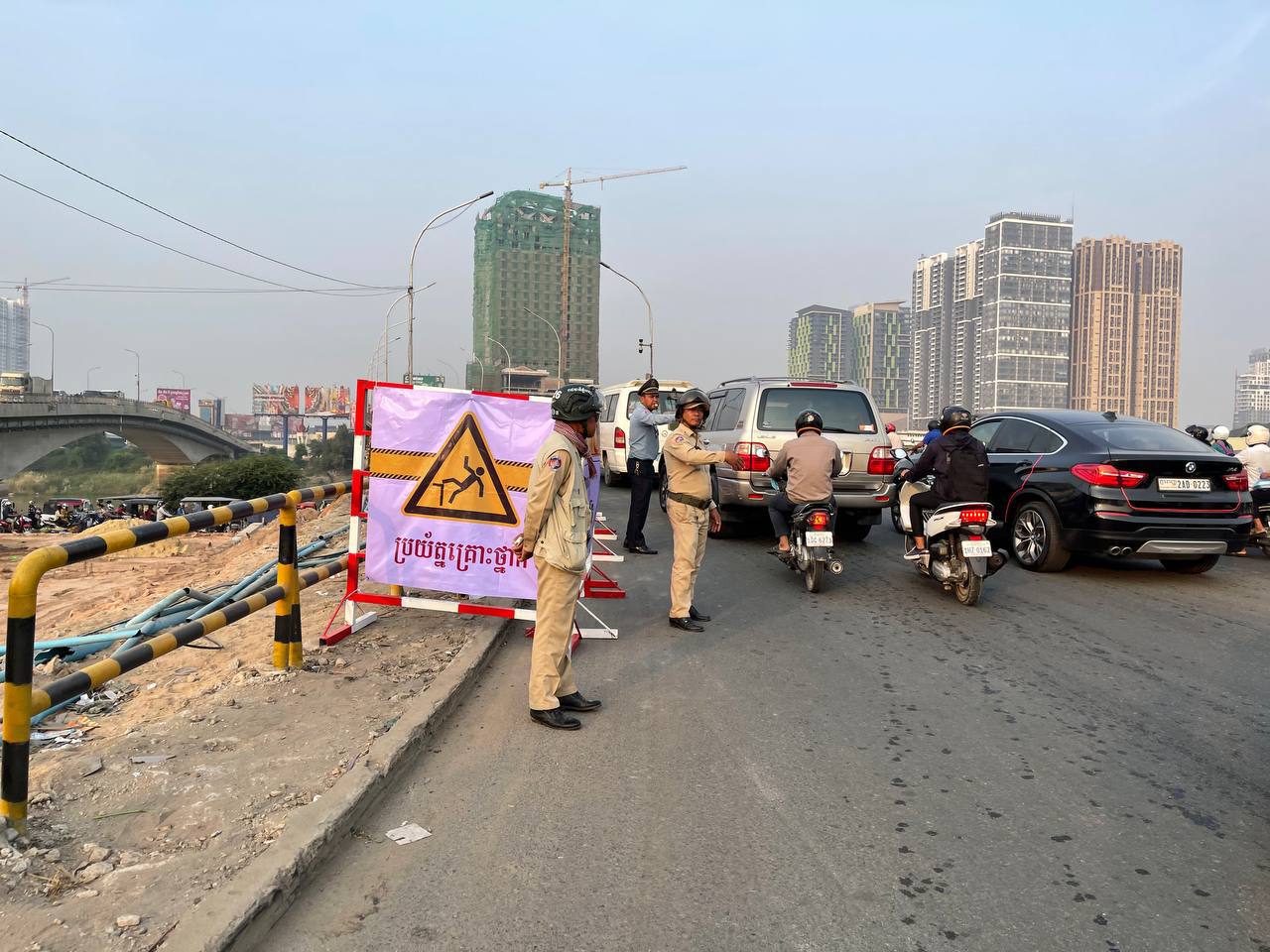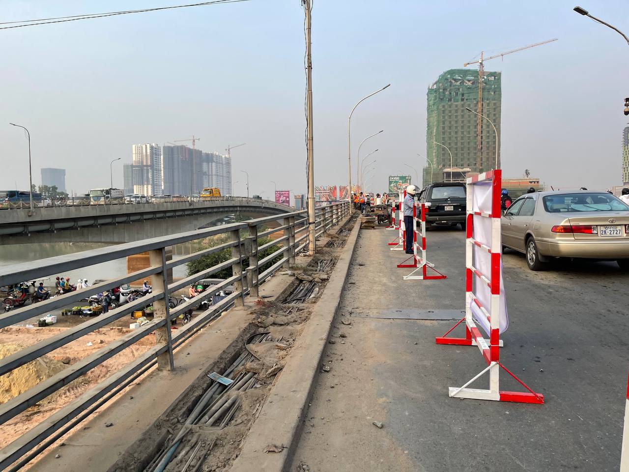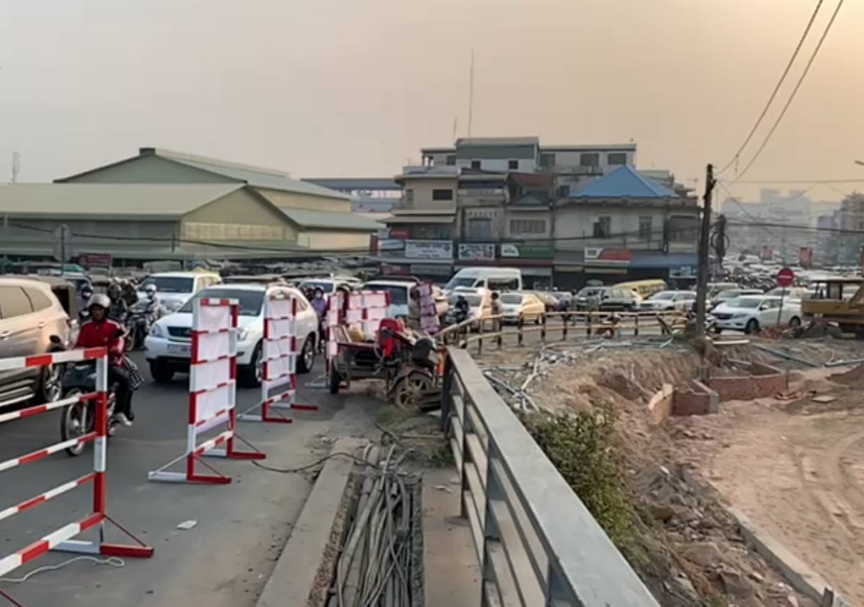 ស្ពានព្រះមុនីវង្សចាស់មានការកកស្ទះចរាចរណ៍យ៉ាងខ្លាំងនាព្រឹកនេះ ព្រោះការដ្ឋានជួសជុលបង្កាន់ដៃស្ពានកំពុងចាប់ផ្តើម