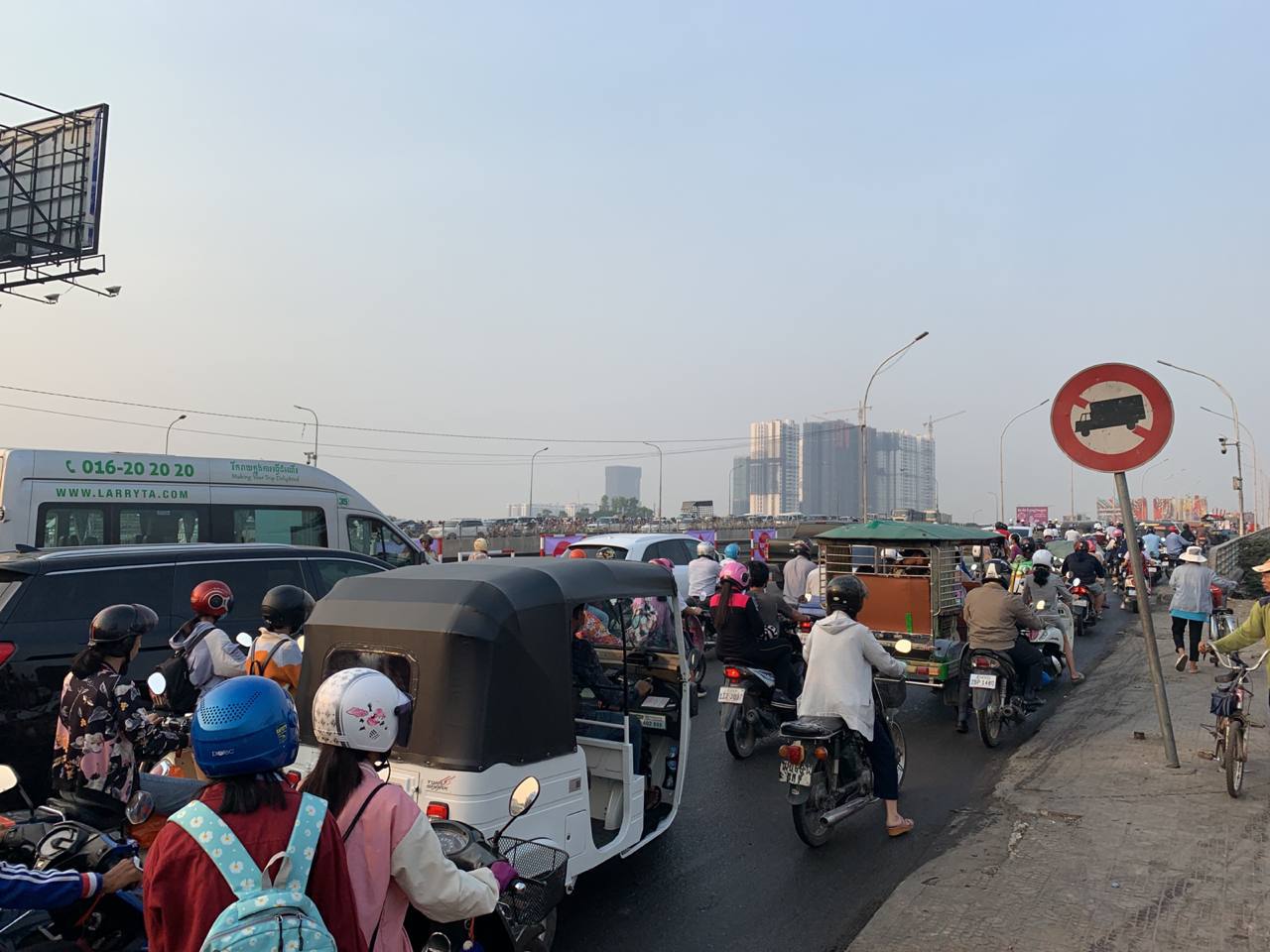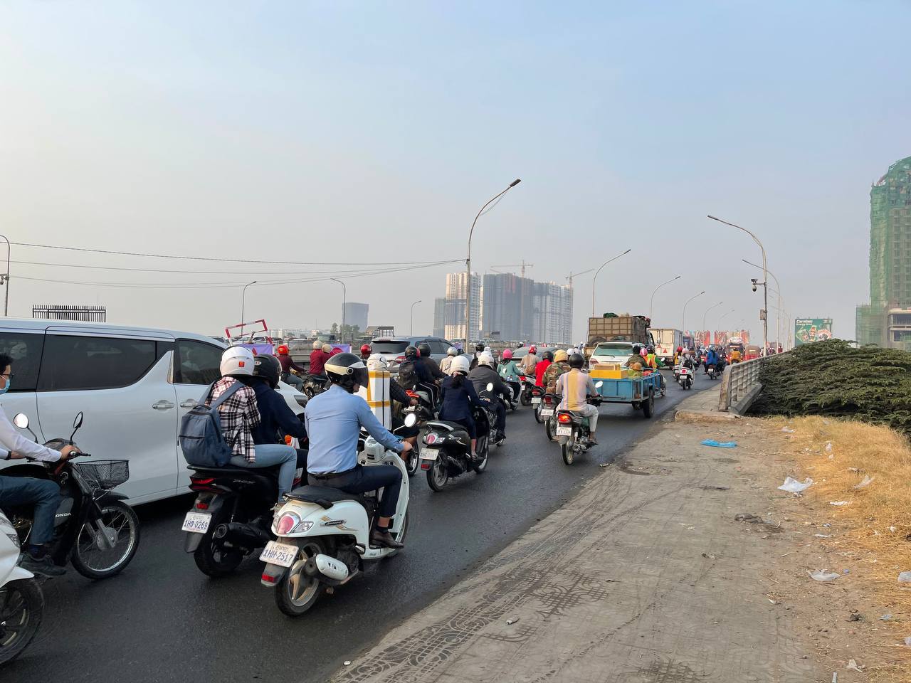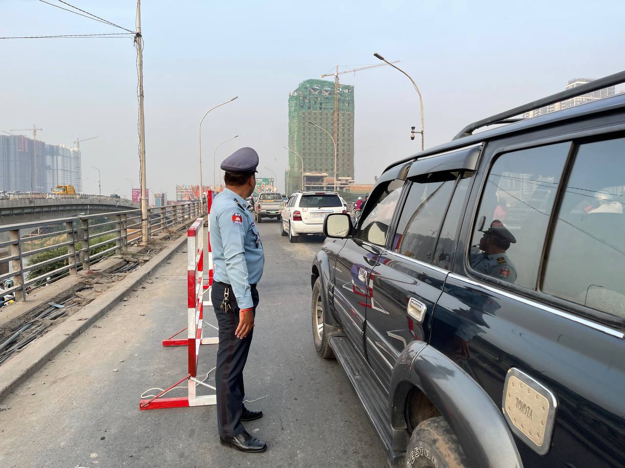 ស្ពានព្រះមុនីវង្សចាស់មានការកកស្ទះចរាចរណ៍យ៉ាងខ្លាំងនាព្រឹកនេះ ព្រោះការដ្ឋានជួសជុលបង្កាន់ដៃស្ពានកំពុងចាប់ផ្តើម