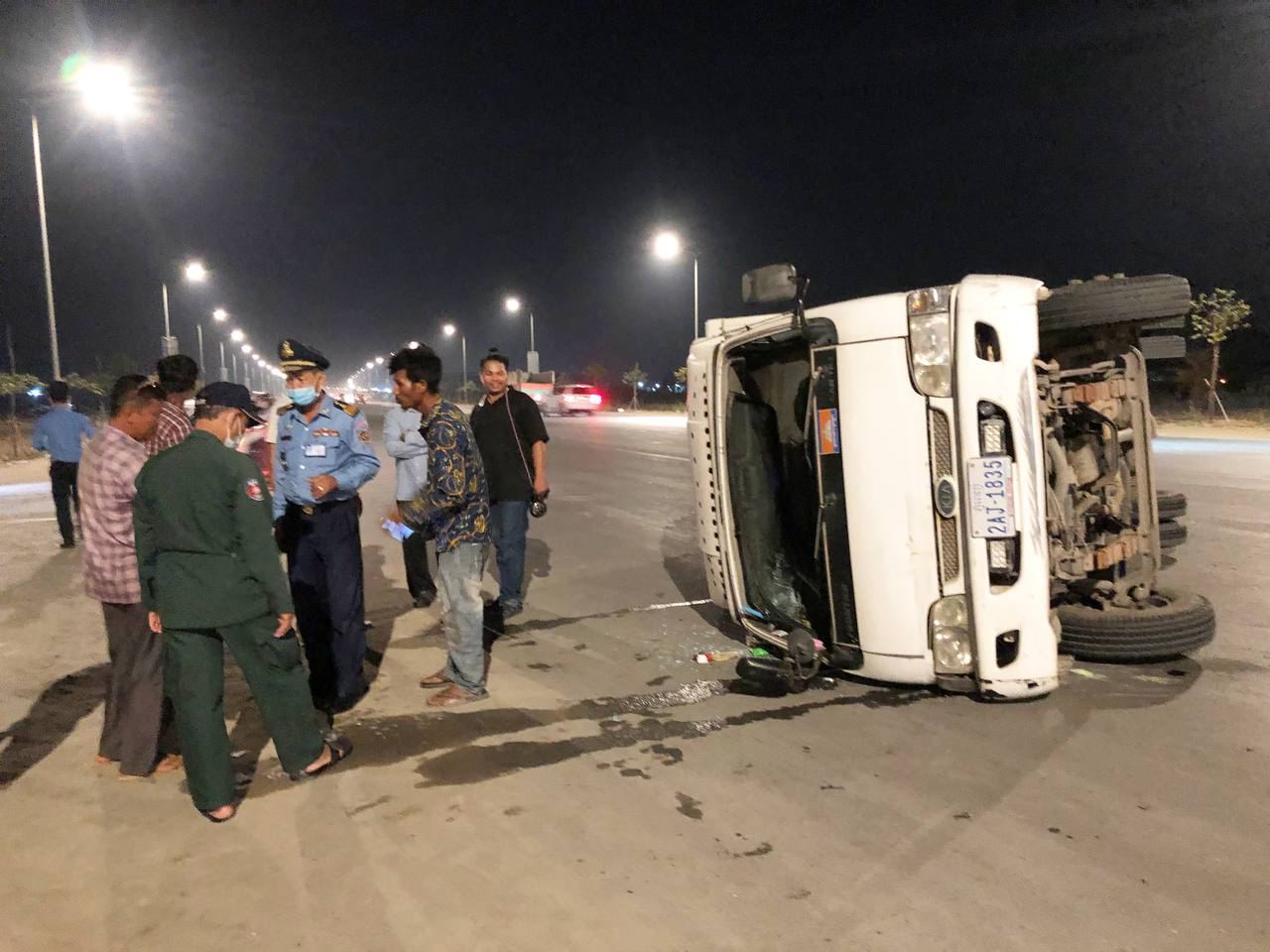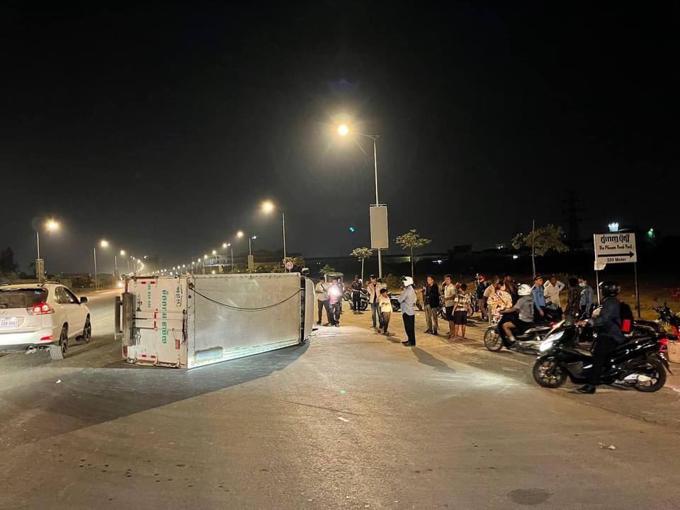 ភ្ភ្នំពេញ៖ រថយន្តយីឌុបមួយគ្រឿង បើកបរដោយបុរសម្នាក់ទំនងស្រវឹងស្រាក្នុងល្បឿនលឿន និងមិនប្រយ័ត្ន បានជ្រុលទៅបុករថយន្តដឹកទឹកកកពីក្រោយពេញទំហឹង បណ្ដាលឲ្យរថយន្តដឹកទឹកកកក្រឡាប់ផ្ងារជើង មួយចំហៀង បង្កការភ្ញាក់ផ្អើលកាលពីវេលាម៉ោងជិត៩យប់ ថ្ងៃទី២៦ ខែមករា ឆ្នាំ២០២១ នៅបណ្ដោយផ្លូវ៦០ម៉ែត្រ ត្រង់ចំណុចកែងផ្លូវបេតុងក្រោយផ្សារក្រមួន ក្នុងភូមិព្រែកតាឡុង១ សង្កាត់ចាក់អង្រែក្រោម ខណ្ឌមានជ័យ រាជធានីភ្នំពេញ ។