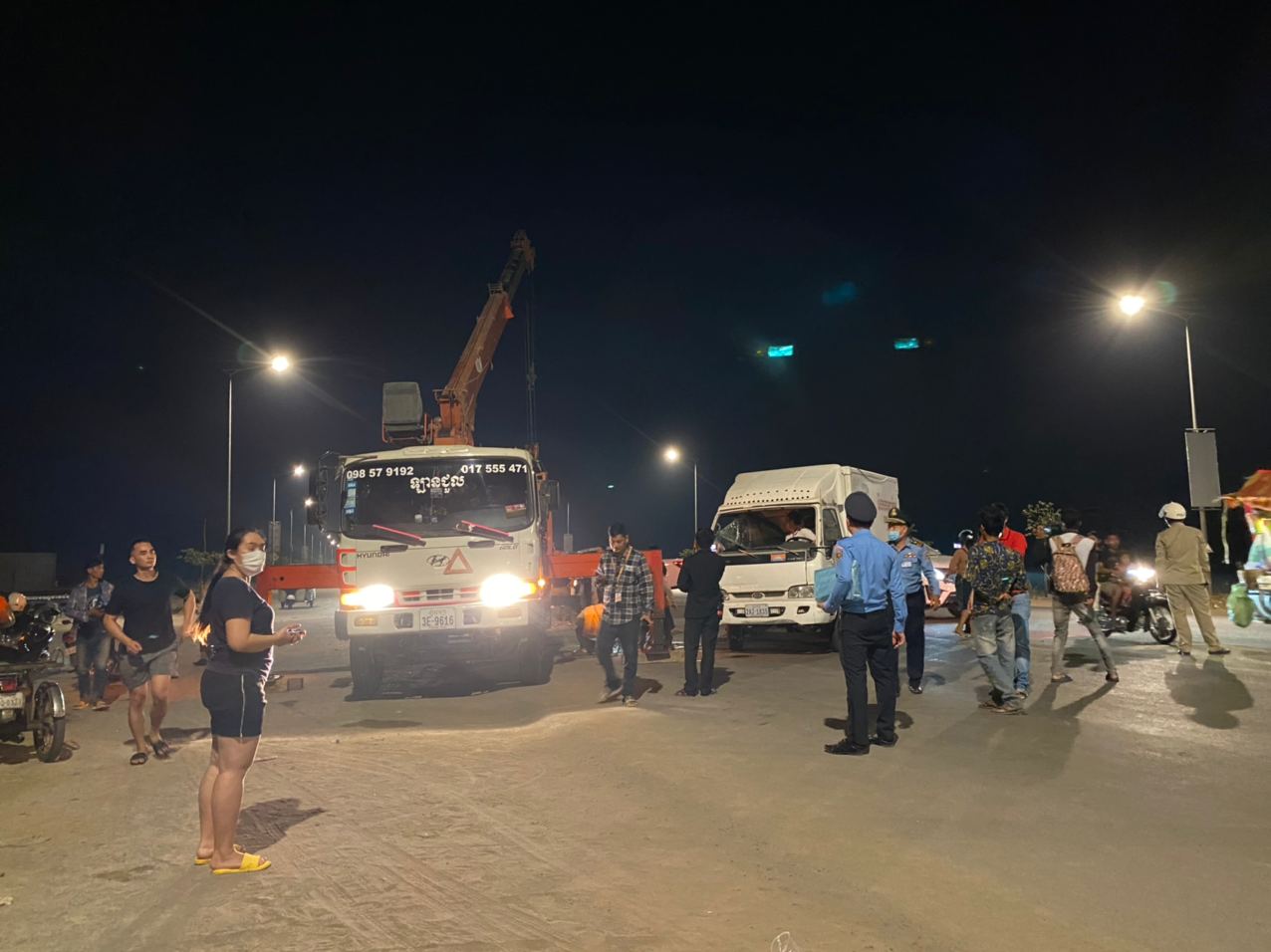 ក្រោយមក ឃើញមានកម្លាំងសមត្ថកិច្ចមូលដ្ឋានក៍ដូចជាជំនាញចរាចរណ៍ខណ្ឌមានជ័យ បានចុះទៅកន្លែងកើតហេតុ រួចហើយបានបាញ់ថ្នាំ និងធ្វើការវាស់វែង ស្ទូចយករថយន្តដាក់គៀន កុំឲ្យមានការកកស្ទះចរាចរណ៍ដល់អ្នកដំណើរដទៃទៀត ព្រមទាំងឲ្យភាគីទាំងសងខាងសម្របសម្រួលគ្នាផងដែរ ។