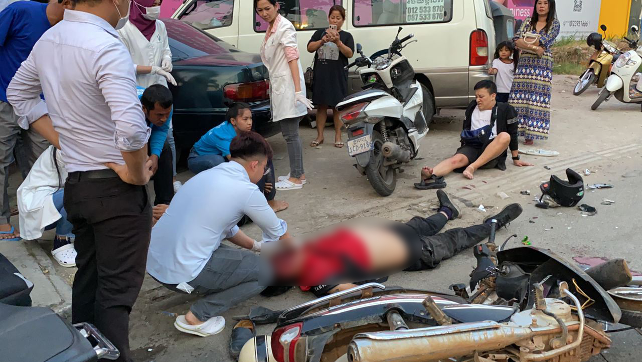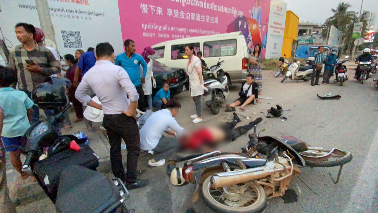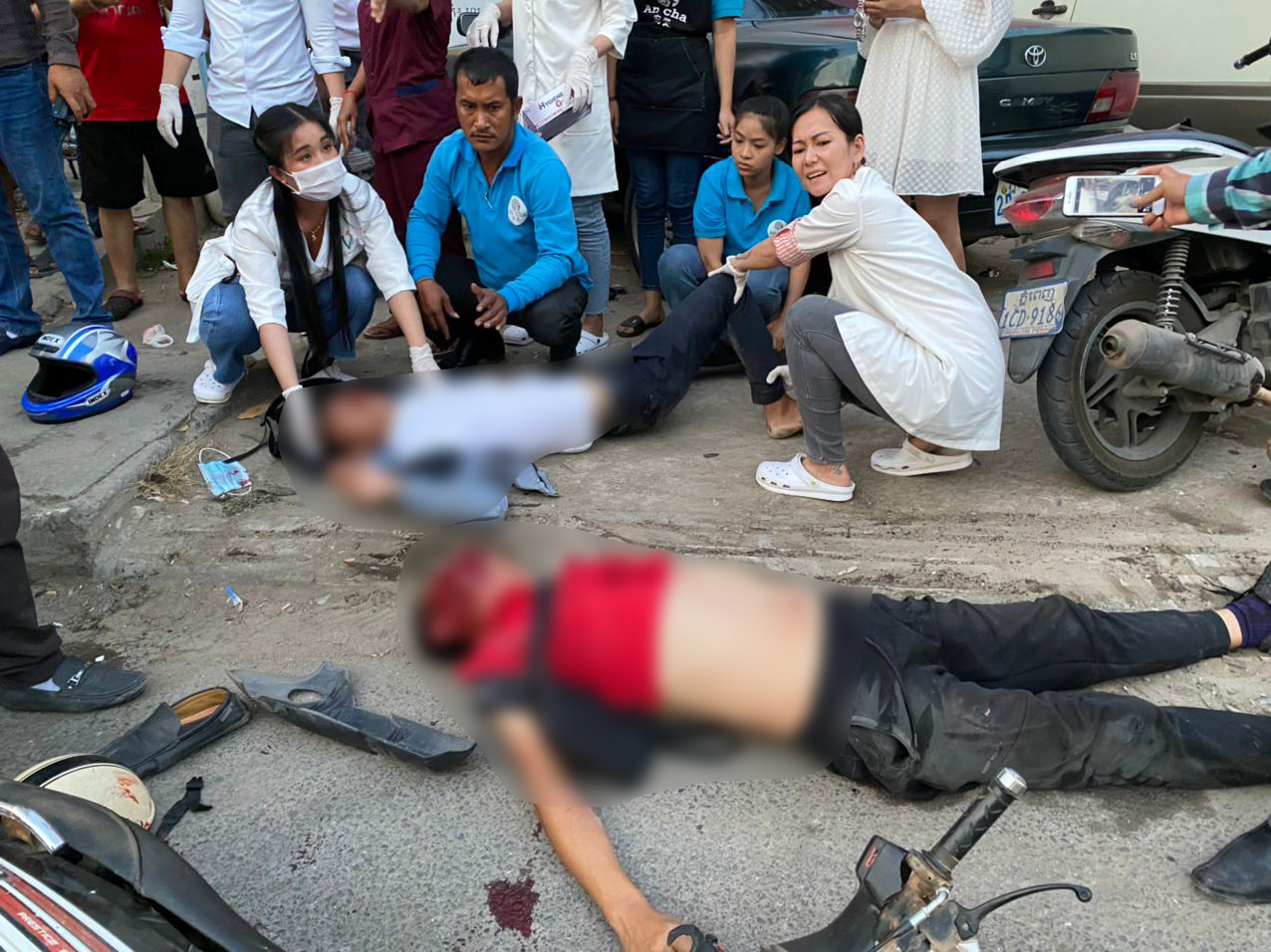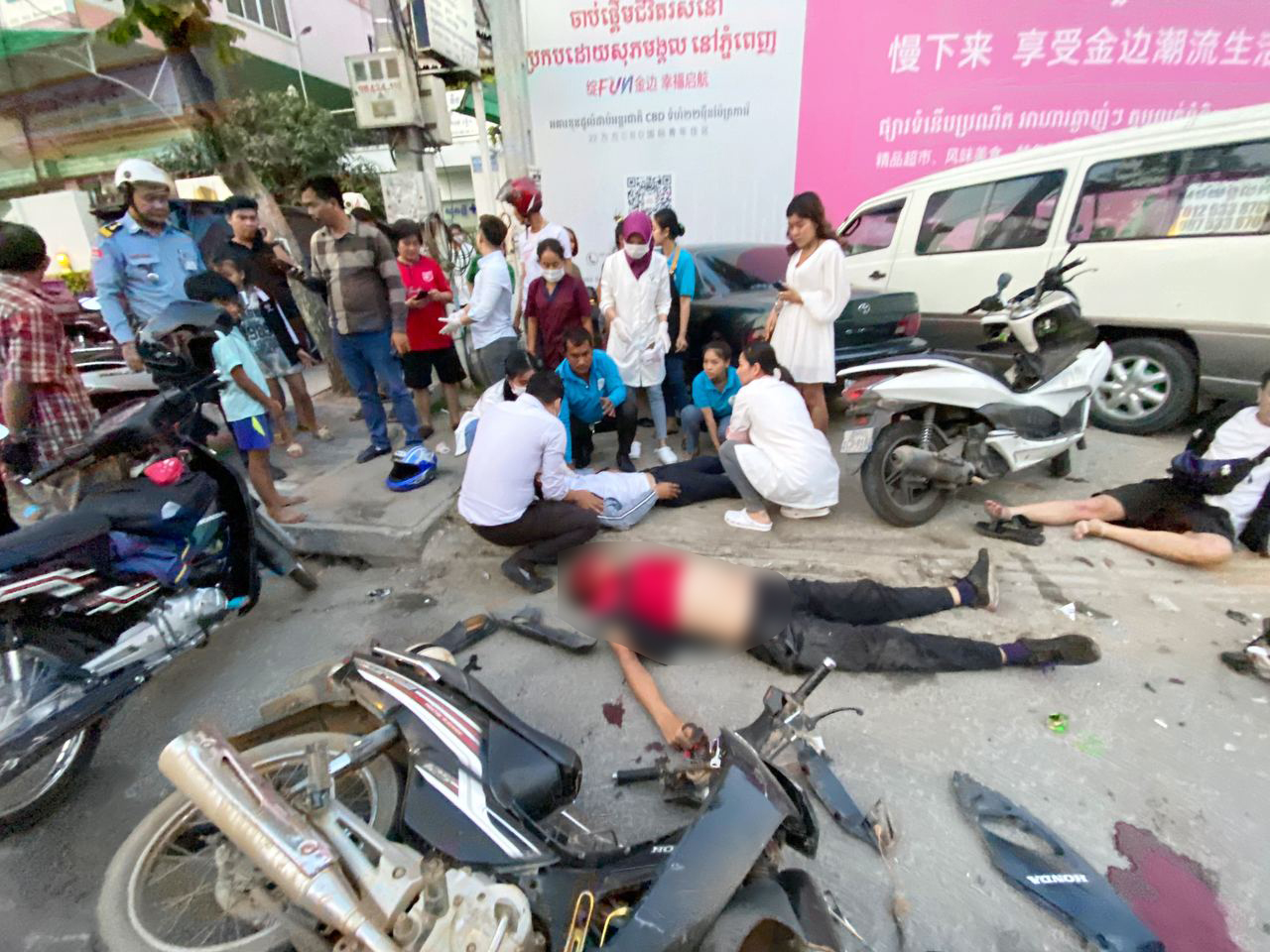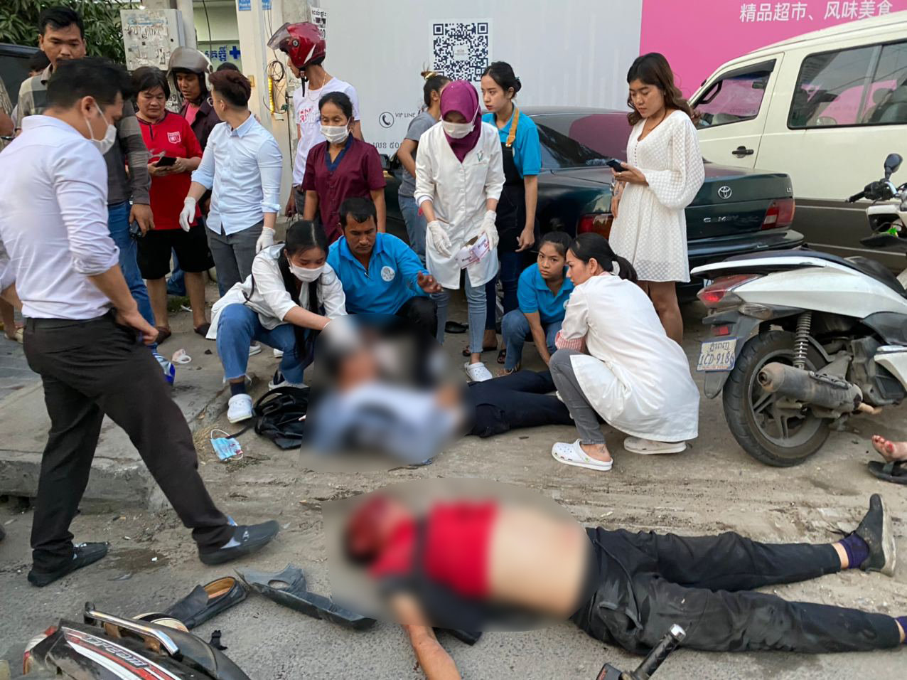 ជនជាតិចិនជិះម៉ូតូបញ្ច្រាសផ្លូវទៅបុកម៉ូតូសិស្សសាលាពេញទំហឹង បណ្តាលឲ្យរបួសធ្ងន់៣នាក់