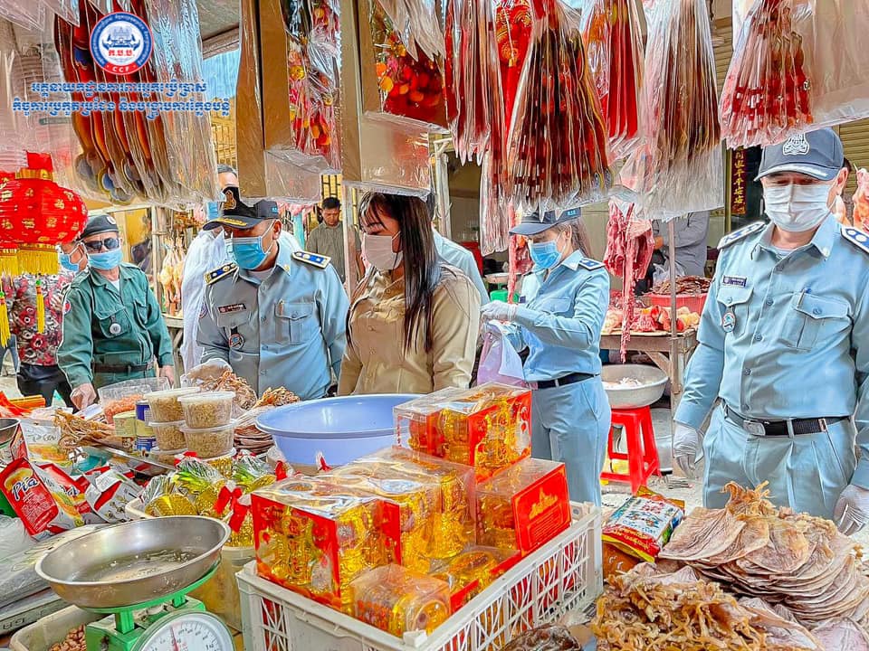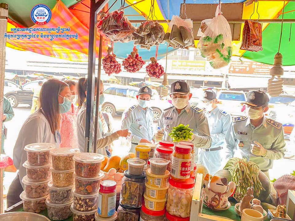 រាជធានីភ្នំពេញ៖ តាមការចុះផ្សាយរបស់ អគ្គ.ការពារអ្នកប្រើប្រាស់ កិច្ចការប្រកួតប្រជែង និងបង្ក្រាបការក្លែងបន្លំ CCF បានឲ្យដឹងថា មន្ដ្រីជំនាញអគ្គនាយកដ្ឋាន ក.ប.ប. នៃក្រសួងពាណិជ្ជកម្ម បន្តចុះយុទ្ធនាការពង្រឹងសុវត្ថិភាពចំណីអាហារនៅរាជធានីភ្នំពេញ នៅព្រឹកថ្ងៃទី២៩ ខែមករា ឆ្នាំ២០២១នេះ អគ្គនាយកដ្ឋានការពារអ្នកប្រើប្រាស់ កិច្ចការប្រកួតប្រជែង និងបង្រ្កាបការក្លែងបន្លំ «ក.ប.ប.» នៃក្រសួងពាណិជ្ជកម្ម បាននាំយករថយន្តពិសោធន៍ចល័តផ្នែកម្ហូបអាហារចំនួន២គ្រឿង ចុះប្រតិបត្តិការចំនួន២ទីតាំងផ្សេងគ្នា គឺនៅផ្សារឈូកមាស ស្ថិតនៅក្នុងសង្កាត់គោកឃ្លាង ខ័ណ្ឌសែនសុខ និងផ្សារជម្ពូវ័ន ស្ថិតនៅក្នុងសង្កាត់ចោមចៅ ខ័ណ្ឌពោធិ៍សែនជ័យ ដើម្បីពិនិត្យភាពអនុលោមភាពលើទំនិញជាម្ហូបអាហារ។