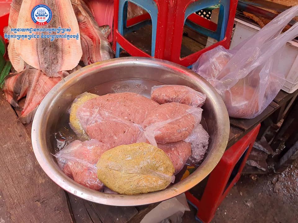 -នំស្លឹកស្រស់ និងប្រហិតត្រី ចំនួន ៨,៤គីឡូក្រាម មានវត្តមានសារធាតុគីមីហាមឃាត់បូរ៉ាក់។
