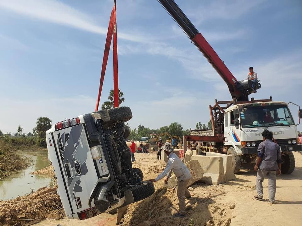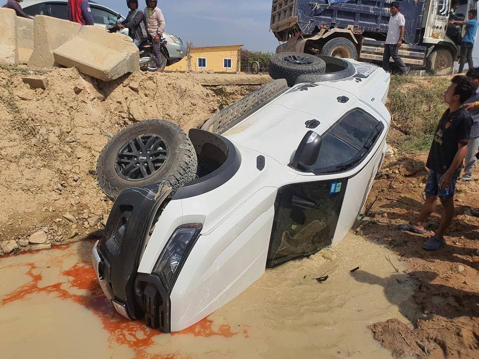 រាជធានីភ្នំពេញ៖ ករណីរថយន្ត Ford Ranger Raptor ពណ៌ស តម្លៃជាង៧ម៉ឺនដុល្លារ ថ្មីស្រឡាង បើកលឿនរេចង្កូតធ្លាក់ផ្លូវក្រឡាប់ផ្ងារជើងម្ខាង បណ្ដាលឲ្យលិចមួយកំណាត់រថយន្ត ខូចខាតយ៉ាងដំណំ តែដោយសារតែរថយន្តស៊េរីទំនើប ទើបមិនបណ្ដាលឲ្យមនុស្សរងគ្រោះថ្នាក់អ្វីឡើយ បង្កការភ្ញាក់ផ្អើលយ៉ាងខ្លាំងដល់អ្នកដំណើរ រាយការណ៍ប្រាប់សមត្ថកិច្ចមូលដ្ឋានចុះជួយអន្តរាគមន៍។