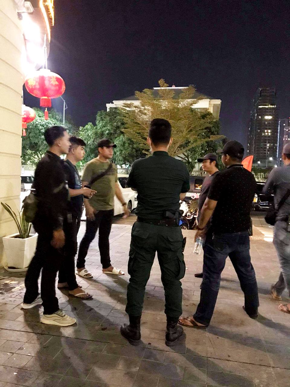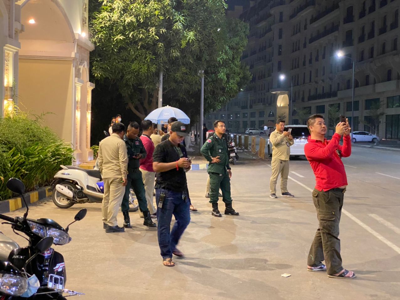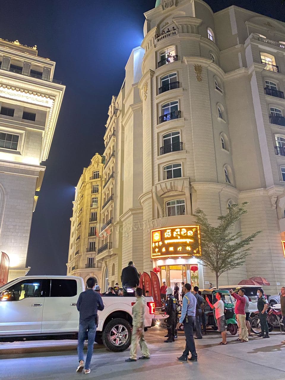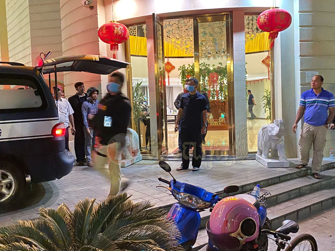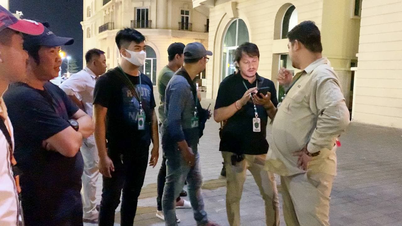 ហេតុការណ៍នេះគេឃើញមានជនជាតិចិន២នាក់ បានរងរបួសដោយមិនទាន់ដឹងពីមូលហេតុ នៅត្រូវបានបញ្ជូនតាមរថយន្តសង្គ្រោះរបស់ អាវុធហត្ថរាជធានីភ្នំពេញ ដឹកយកទៅសង្គ្រោះនៅឯមន្ទីរពេទ្យ។ ក្រោយមកគេឃើញក្បួនកម្លាំង គ-អន្តរាគមន៍ នៃកងរាជអាវុធហត្ថរាជធានីភ្នំពេញ ចុះមកដល់កន្លែងកើតហេតុរងចាំបទបញ្ជា ត្រៀមលក្ខណៈ ចុះប្រតិបត្តិការ ទ្រុងទ្រាយធំ ដែលធ្វើឡើងបន្ទាប់ពីសមត្ថកិច្ចទទួលបានព័ត៌មានថា ក្រុមជនសង្ស័យទាំងនេះប្រដាប់ដោយអាវុធនៅជាន់ខាងលើ ទើបកម្លាំងជំនាញ និងកម្លាំង គ-អន្តរាគមន៍ នៃកងរាជអាវុធហត្ថរាជធានីភ្នំពេញ ដឹកនាំផ្ទាល់ដោយលោកឧត្តមសេនីយ៍ឯក រ័ត្ន ស្រ៊ាង មេបញ្ជាការរងកងរាជអាវុធហត្ថលើផ្ទៃប្រទេស និងជាមេបញ្ជាការកងរាជអាវុធហត្ថរាជធានីភ្នំពេញ សហការណ៍ជាមួយកម្លាំងមូលដ្ឋានអាវុធហត្ថខណ្ឌចំការមន បានបន្តប្រតិបត្តិការទ្រុងទ្រាយធំតែម្ដង ដោយកម្លាំង គ-អន្តរាគមន៍ នៃកងរាជអាវុធហត្ថរាជធានីភ្នំពេញ បានឆ្មក់ចូលបង្ក្រាប និងធ្វេីការតាមជំនាញរបស់ អាវុធហត្ថផងដែរ។