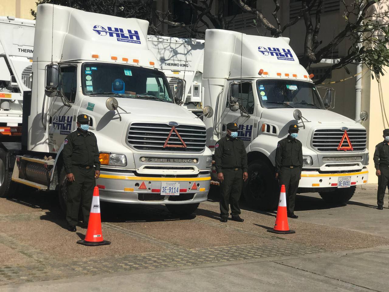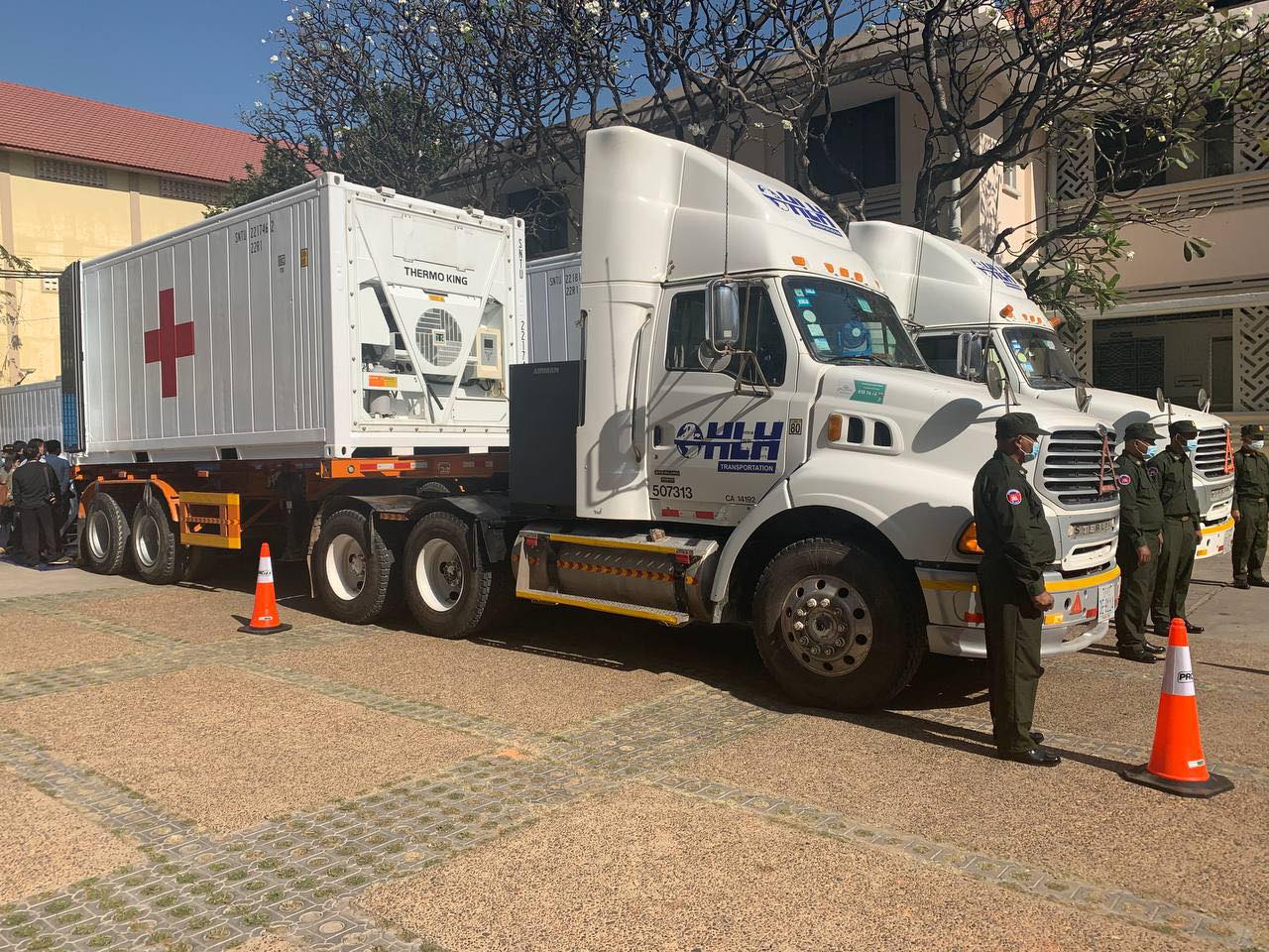 រថយន្តដឹកជញ្ជូនវ៉ាក់សាំង កូវីដ-១៩ ចំនួន២គ្រឿងបានមកដល់កម្ពុជាហើយ