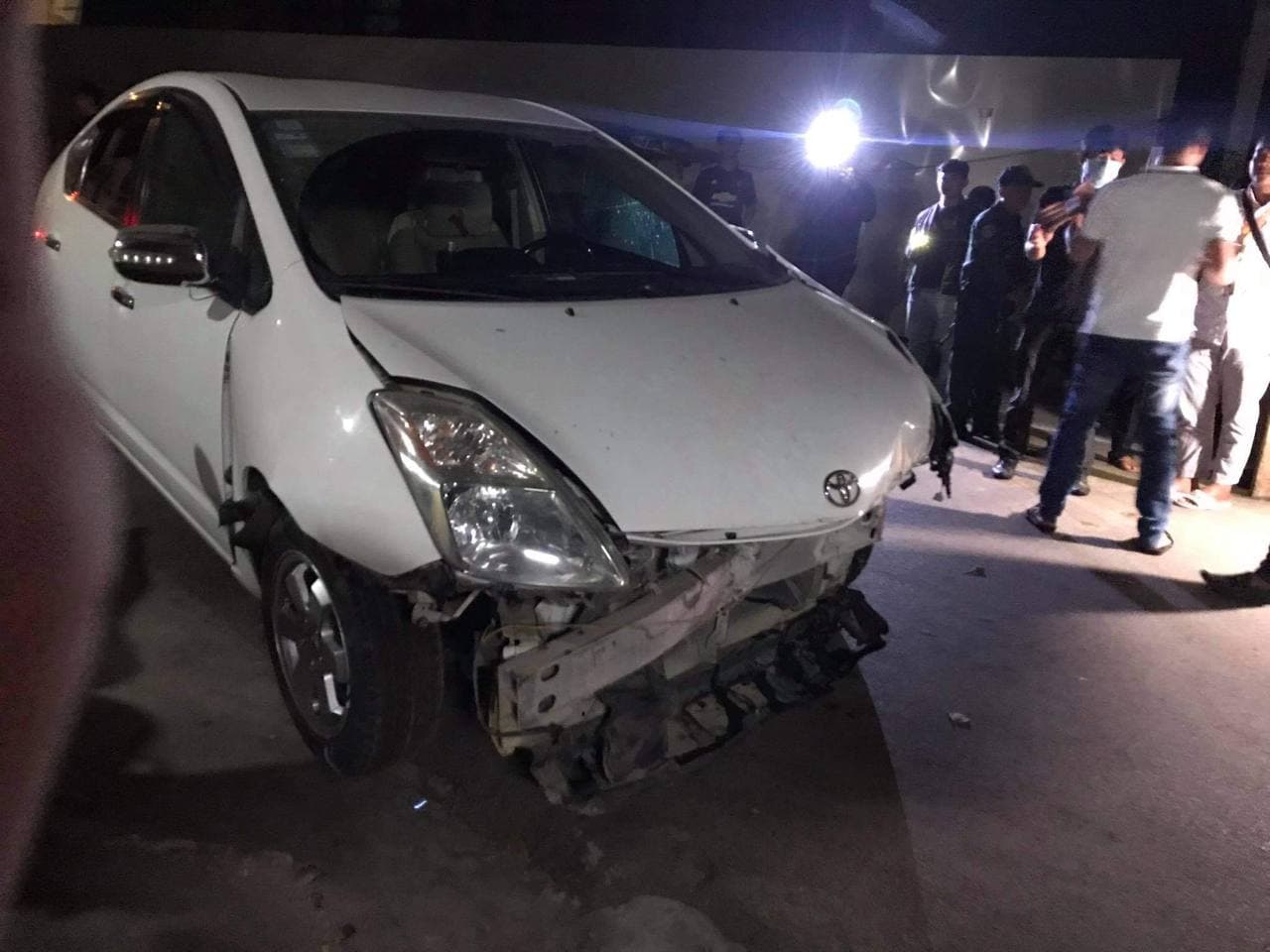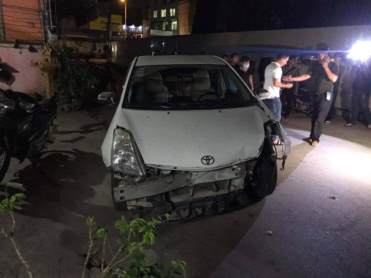 សាក្សីដែលឃើញហេតុការណ៍ផ្ទាល់បានរៀបរាប់ប្រាប់ក្រុមការងារខ្មែរណូតថា នៅមុនពេលកើតហេតុ គេឃើញបុរស ២នាក់ បើកបររថយន្ត មួយគ្រឿងម៉ាកតូយ៉ូតាព្រូស (TOYOTA PRIUS) ពណ៌ស ពាក់ស្លាកលេខភ្នំពេញ 2BB-7018 ដោយធ្វើដំណើរក្នុងស្ថានភាពស្រវឹង តាមបណ្ដោយផ្លូវ១៥៥ ទិសដៅពីត្បូងទៅជើង និងក្នុងល្បឿនយ៉ាងលឿន លុះដល់ចំណុចកើតហេតុរថយន្តនោះក៏បំរុងបត់ស្ដាំទៅផ្លូវ ម៉ៅសេទុង ខណៈពេលនោះដោយបួងចង្កូតមិនទាន់ ក៏ជ្រុលទៅបុករបាំងថ្មពុះចែកទ្រូងផ្លូវពេញទំហឹង បណ្តាលឲ្យបាក់អស់ចំនួន ២ផ្ទាំង ចំណែកឯរថយន្តបានរងការខូចខាតមួយកំណាត់ខាងមុខយ៉ាងដំណំ តែមិនបង្កឲ្យមានអ្នករងរបួសនោះទេបន្ទាប់មកអ្នកបើកបរ រថយន្តនោះ មិនបានឈប់នៅរង់ចាំធ្វើការដោះស្រាយទៅតាមផ្លូវច្បាប់នោះទេ ។ បែរជាព្យាយាមបើកបន្តដំណើររត់គេចចេញពីកន្លែងកើតហេតុតែក៏ មានប្រជាពលរដ្ឋដែលឃើញហេតុការណ៍បានជួយជិះម៉ូតូដេញតាមពីក្រោយ និងរាយការណ៍ជូនសមត្ថកិច្ចមូលដ្ឋាន ហើយក៏ត្រូវបាន សមត្ថកិច្ចមូលដ្ឋានប៉ុស្តិ៍នគរបាលរដ្ឋបាលទន្លេបាសាក់ ធ្វើការស្ទាក់ចាប់បាននៅត្រង់ចំណុចខាងលើភ្លាមៗតែម្តង ។