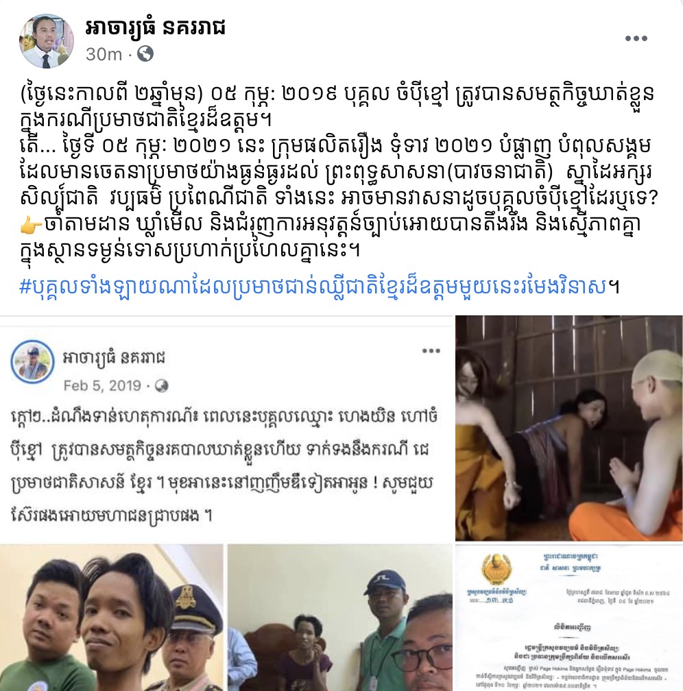 តេី…​ ថ្ងៃទី​ ០៥​ កុម្ភៈ​ ២០២១​ នេះ​ ក្រុមផលិតរឿង​ ទុំទាវ​ ២០២១​ បំផ្លាញ​ បំពុលសង្គម​ ដែលមានចេតនាប្រមាថយ៉ាងធ្ងន់ធ្ងរ​ដល់​ ព្រះពុទ្ធសាសនា​(បាវចនាជាតិ)​ ស្នាដៃអក្សរសិល្ប៍​ជាតិ​ វប្បធម៌​ ប្រពៃណី​ជាតិ​ ទាំងនេះ​ អាចមានវាសនាដូចបុគ្គល​ចំប៉ីខ្មៅដែរឬទេ?