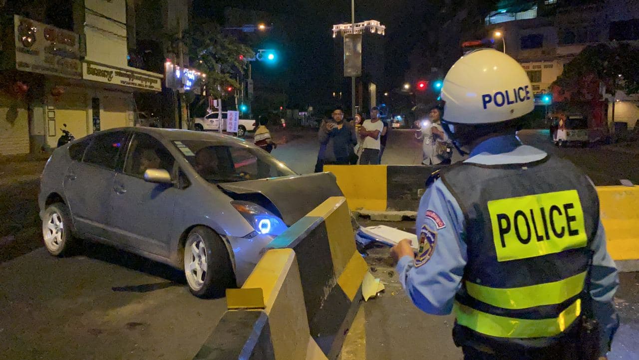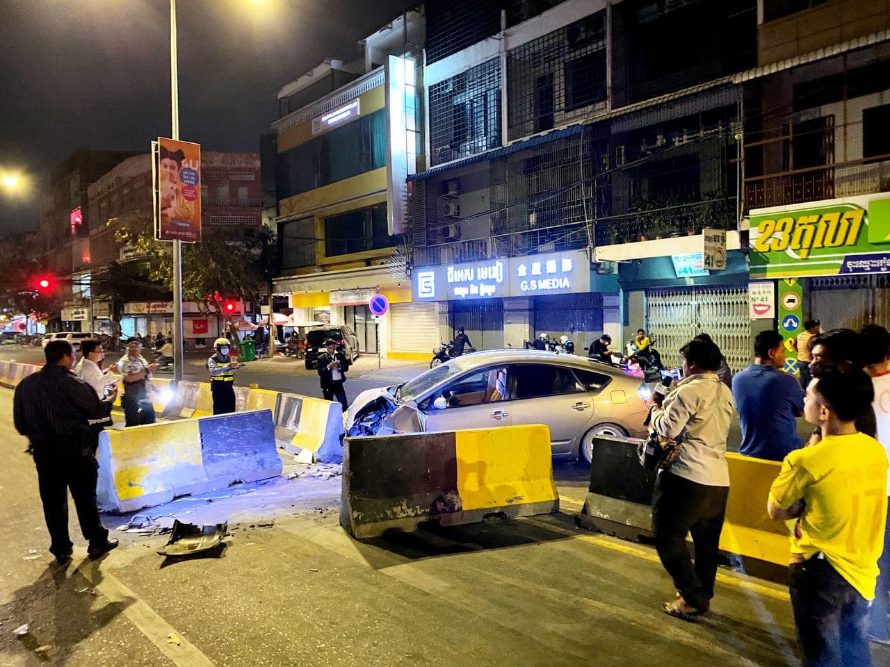 ស្ដែងណាស់! ប្រុស-ស្រីមួយក្រុមបើករថយន្តយ៉ាងលឿន រេចង្កូតទៅបុករបាំងថ្មពុះចែកផ្លូវពេញទំហឹង បណ្ដាលឲ្យរបាំងផ្លូវខ្ទាតទៅលើគន្លងផ្លូវម្ខាងទៀត ចំណែកម្ចាស់រថយន្តនាំគ្នារត់គេចខ្លួនបាត់អស់