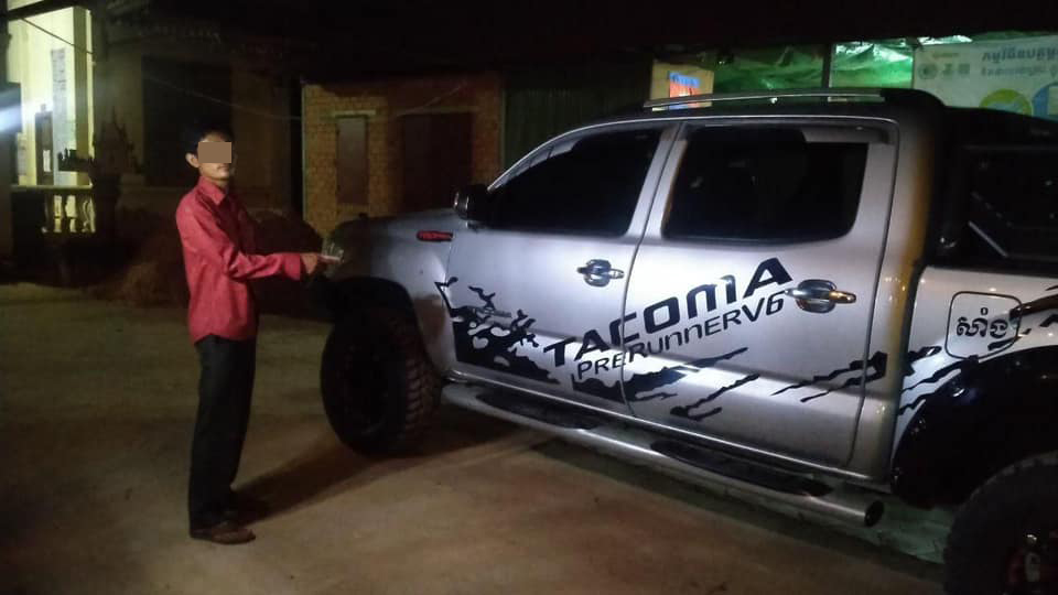 ជនរងគ្រោះឈ្មោះ ឆាយ រតនៈ ភេទប្រុស អាយុ ២១ឆ្នាំ មានទីលំនៅបច្ចុប្បន្ន ភូមិពេជ្ជោរ ឃុំក្រឡាញ់ ស្រុកក្រឡាញ់ ខេត្តសៀមរាប មុខរបរលក់គ្រឿងអគ្គិសនី បានបើករថយន្តមួយគ្រឿងម៉ាក toyota តាកូម៉ា ស៊េរីឆ្នាំ២០០៥ ពណ៌ទឹកប្រាក់ ពាក់ស្លាកលេខ សៀមរាប 2C-1975 លេខតួ 5TELU42N35Z098742. លេខម៉ាស៊ីន 1GR0695935 បានចុះមកទិញគ្រឿងបន្លាស់រថយន្ត ដោយមិនបានដកកូនសោរចេញពីរថយន្ត ហើយបានដើរចូលទៅទិញគ្រឿងបន្លាស់រថយន្ត។ ភ្លាមៗនោះ ជនសង្ស័យឈ្មោះ ភូ វុទ្ធី បានធ្វើសកម្មភាព ចូលទៅក្នុងរថយន្តរួចហើយបញ្ឆេះរថយន្ត បើកចេញតែម្ដងតាមបណ្ដោយផ្លូវជាតិលេខ៦ សំដៅទៅទិសខាងកើត ហើយជនរងគ្រោះក៏បានហៅម៉ូតូឌុបដែលនៅក្បែរនោះជិះដេញតាមពីក្រោយជនសង្ស័យ បានចម្ងាយប្រហែល៣០០ម៉ែត្រ ដល់ចំណុចផ្លូវចូល ទៅវត្តត្រាំនាគ ស្ថិតនៅភូមិធ្លក់អណ្ដូង សង្កាត់ស្លក្រាម ក្រុងសៀមរាប ខេត្តសៀមរាប ក៏បានឃាត់រថយន្តដែលជនសង្ស័យកំពុងបើកបរ បានភ្លាមៗនឹងរាយការណ៍មកសមត្ថកិច្ចយើង ចុះធ្វើអន្តរាគមន៍ និងនាំខ្លួនជនសង្ស័យរូបនេះមកធ្វើការសួរនាំ។