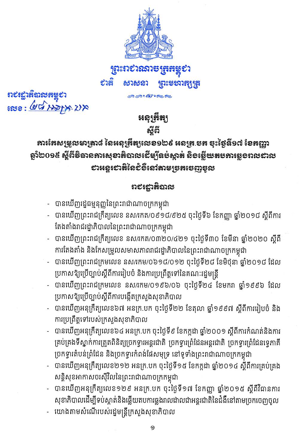 ដើម្បីជ្រាបច្បាស់សូមអានអនុក្រឹត្យខាងក្រោមនេះដូចតទៅ៖